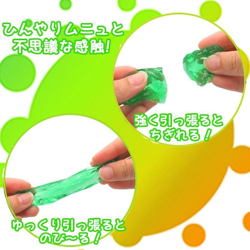 この粘土スライムすごいんです!ゆっくり引っ張るとのびのび〜っと!強く引っ張るとプチッとちぎれます。伸ばしたり、ちぎったり,ひんやり感に子供たちも大興奮!