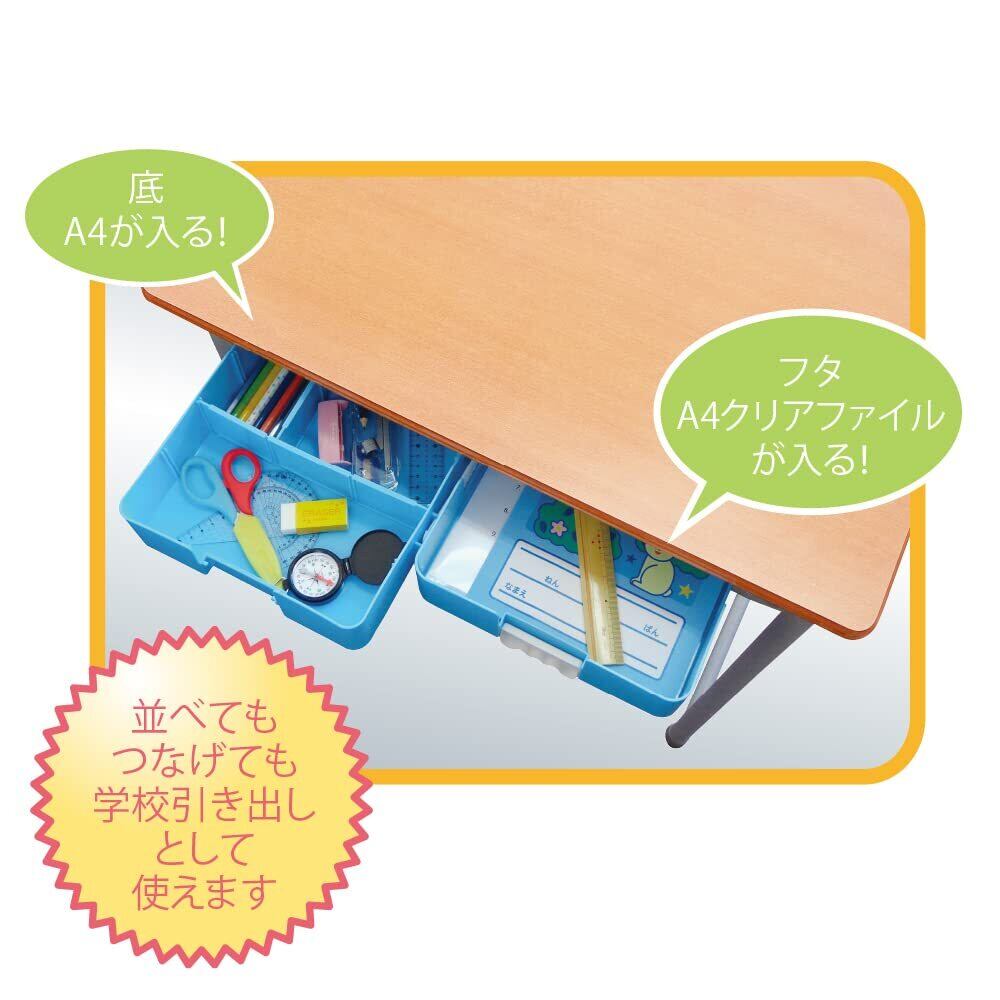 ・フタと底がつながる!手さげを組み合す事で、学校引き出しとして使用できます。