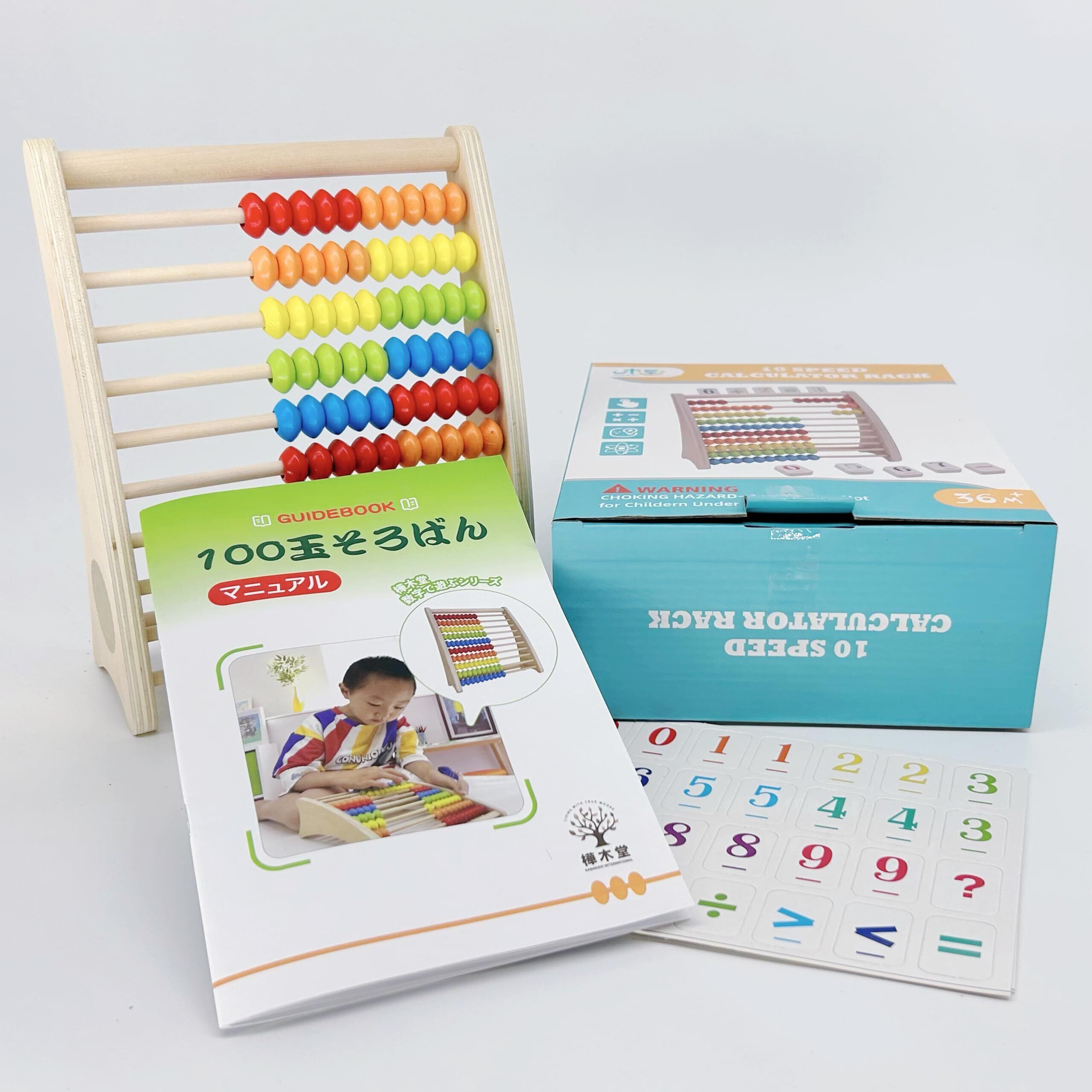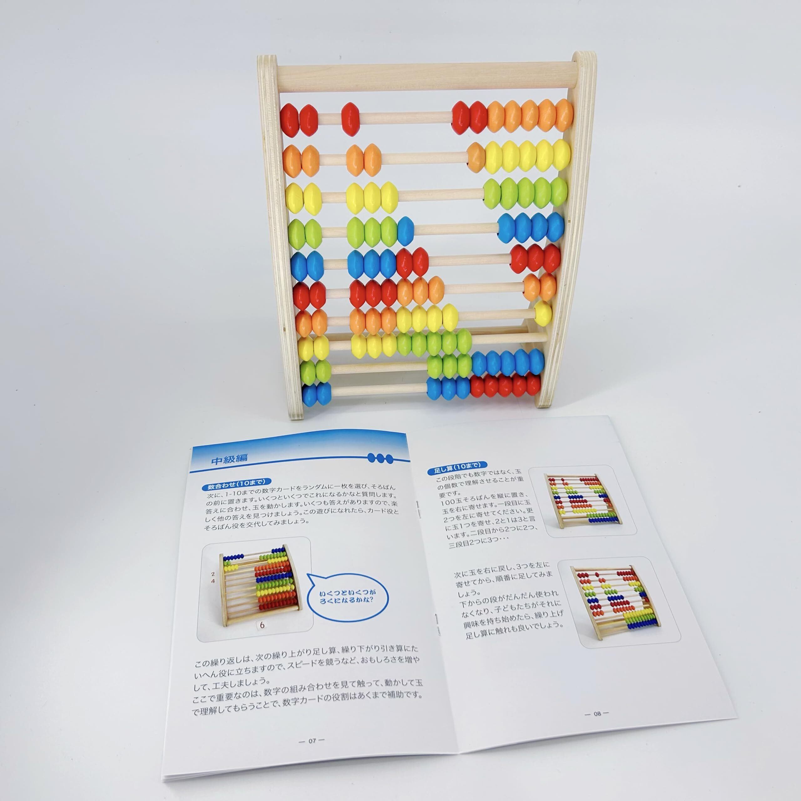 完全木製 100玉そろばん 算数・知育ツール 分かりやすいマニュアル付き 親子で遊んで学ぶ 算数のスタート 数字カード付き 百玉そろばん