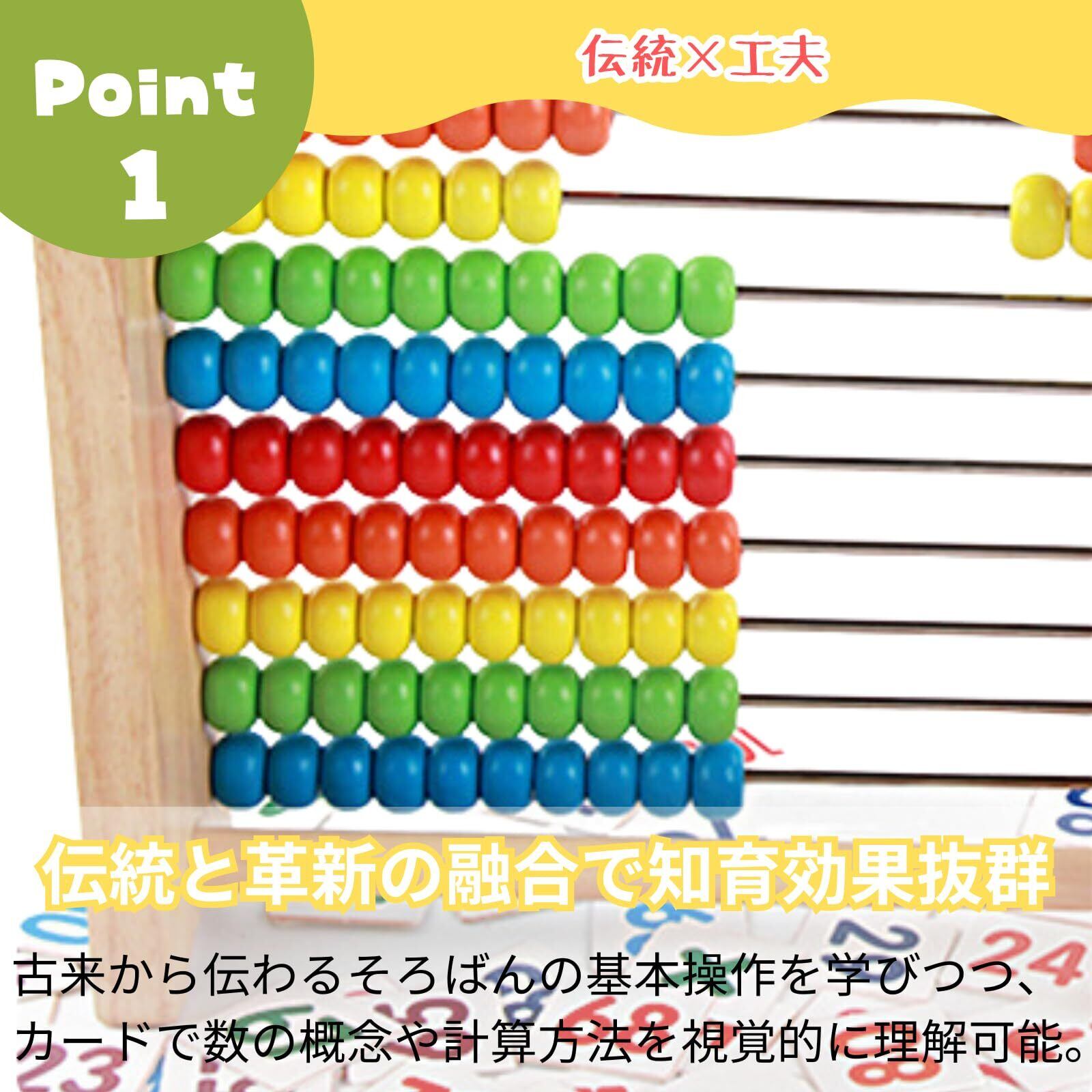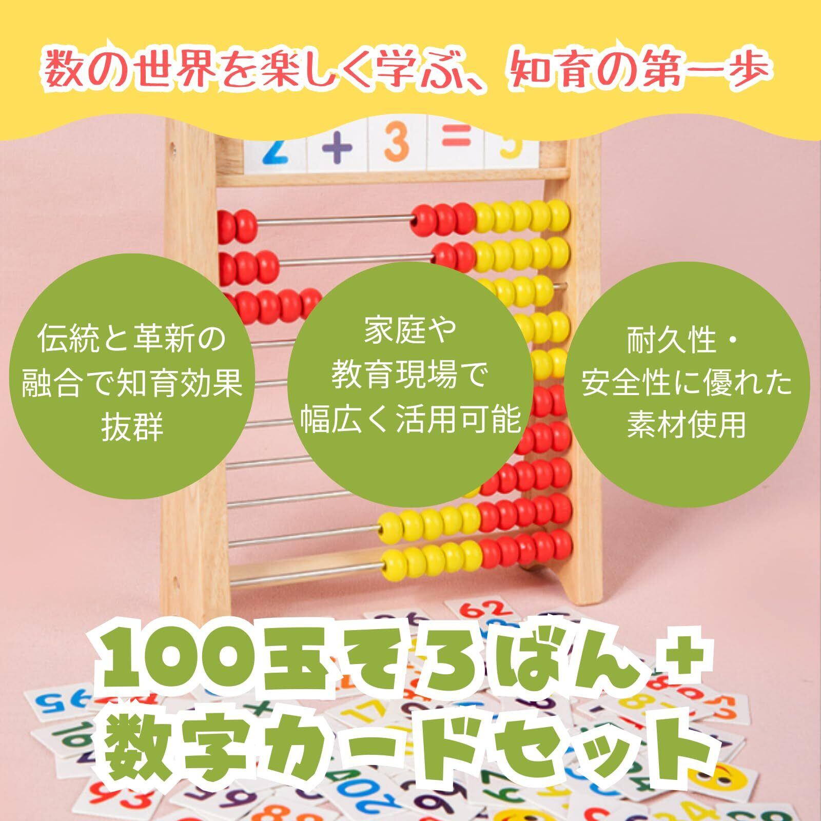 【伝統と革新の融合で知育効果抜群】100玉そろばんと数字カードを組み合わせたセットは、古来から伝わるそろばんの基本操作を学びながら、カードで数の概念や計算方法を視覚的に理解できる、子供の算数力向上に最適な知育玩具です。