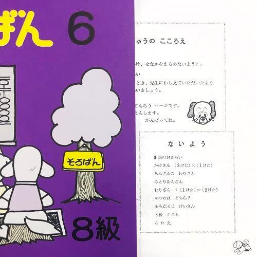 人気の幼い学習者向け珠算教材 「ちびっこそろばん」シリーズで そろばんの初級を学ぶセット 内容は『2桁の見取算・2桁×2桁・÷1桁で商が3桁』 4巻~7巻までの4冊のセットです。 ※本のタイプの教本には 各巻の巻末に解答の掲載がございます。 図解を採用し、わかりやすい親切指導の教材です。 (各巻ともB5判・48ページ) ちびっこそろばん4 ●10級のきそ(2桁の見取り算) ちびっこそろばん5 ●9級のきそ(2桁×1桁の乗算の導入) ちびっこそろばん6 ●8級のきそ(3桁×1桁の乗算と÷1桁で商が2桁の除算の導入) ちびっこそろばん7 ●7級のきそ(2桁×2桁の乗算・÷1桁で商が3桁除算) ※乗算とは・・・掛け算の事 ※除算とは・・・割り算の事 このセットが終われば、次のステップは ちびっこそろばん8 ●6級のきそへ