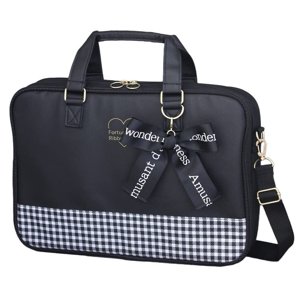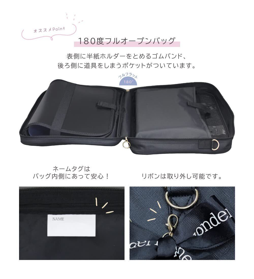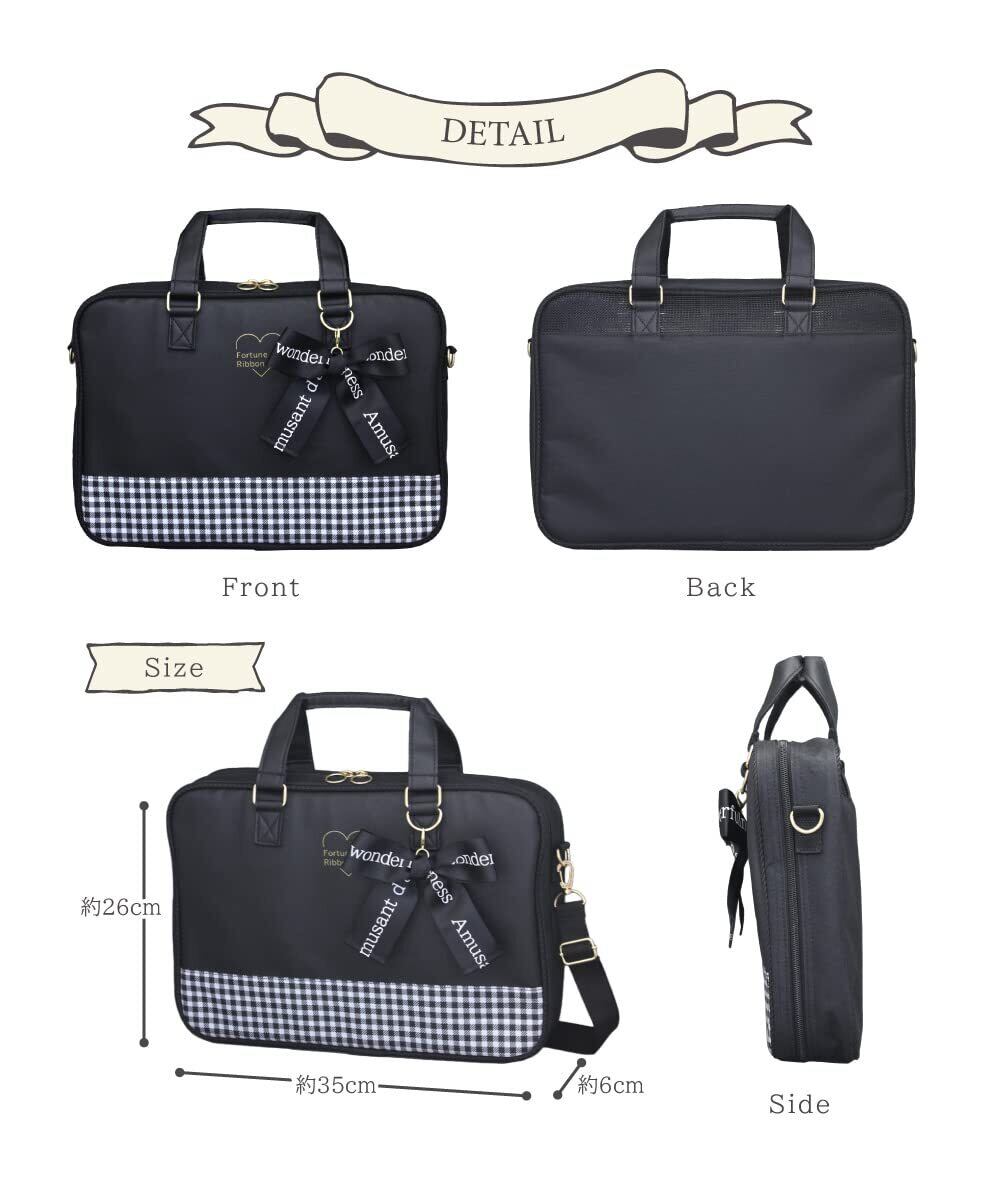 おしゃれなリボンは、年齢やお好みに合わせて取り外し可能です。正面の黒い生地は合皮、その他は布製です。汚れの付着にはご注意ください。【バッグサイズ】外寸 縦26cm×横35cm×奥行6cm