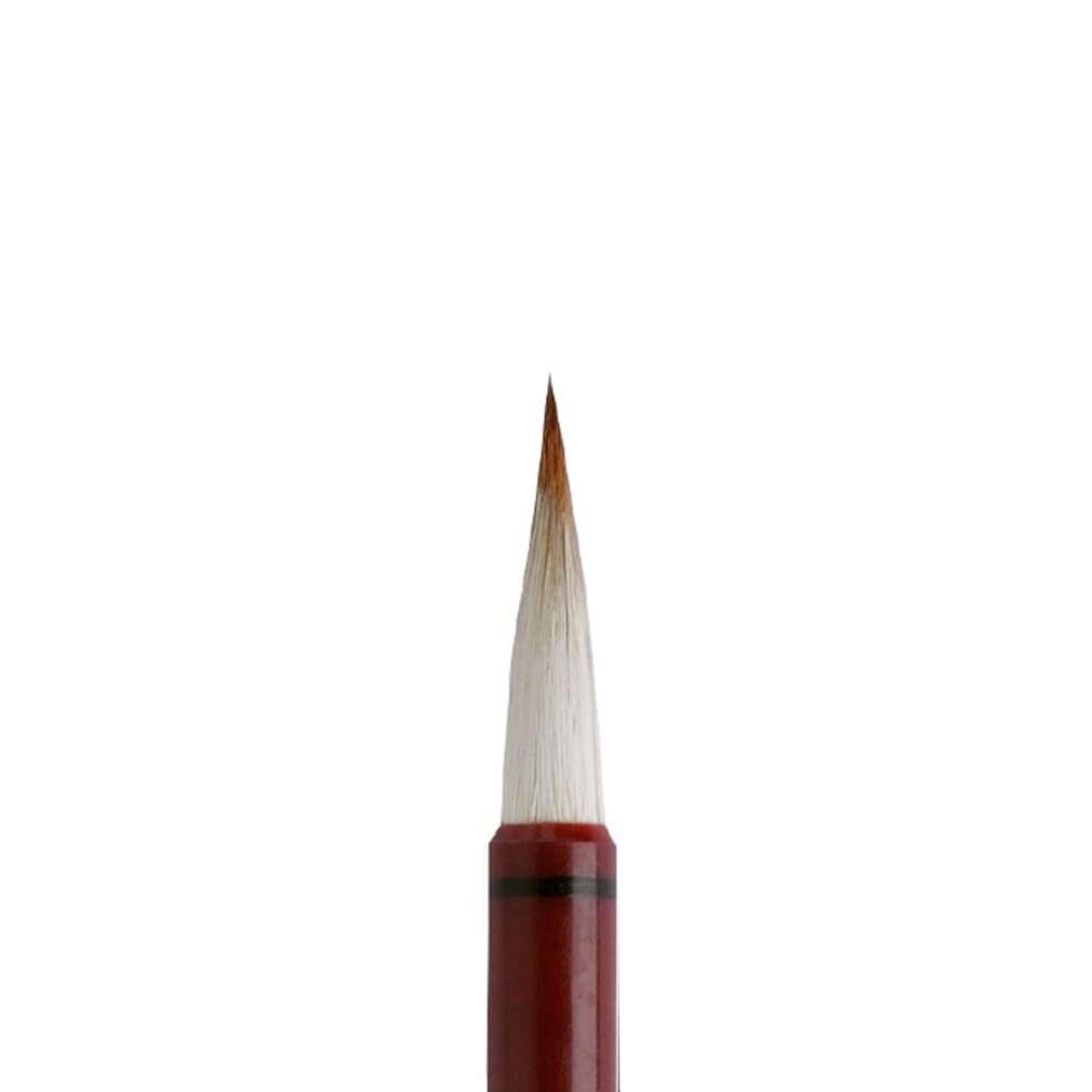 この筆は初心者の半紙名前書きだけではなく、中学校での細字書道、一般手紙、葉書用としてもご使用になれます。穂先はよくまとまり、腰の弾力は硬めで、楷書・行書のどちらにでも適しています。