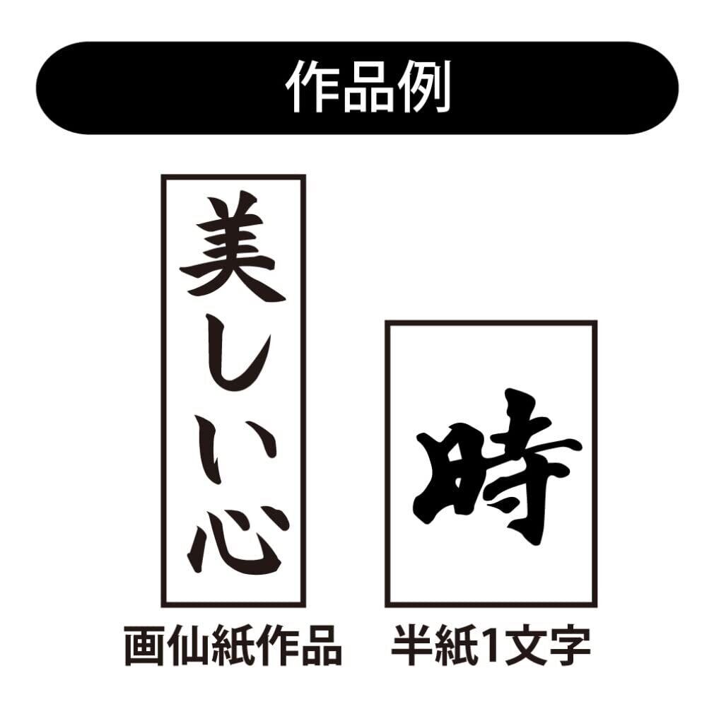 この筆は、学校書道の書初め作品づくりや、趣味の書道での条幅作品の制作に適します。楷書の鋭い線の表現と行書のやわらかい線の表現、両方の特長を兼ね備えた筆で、穂先もよくまとまります。