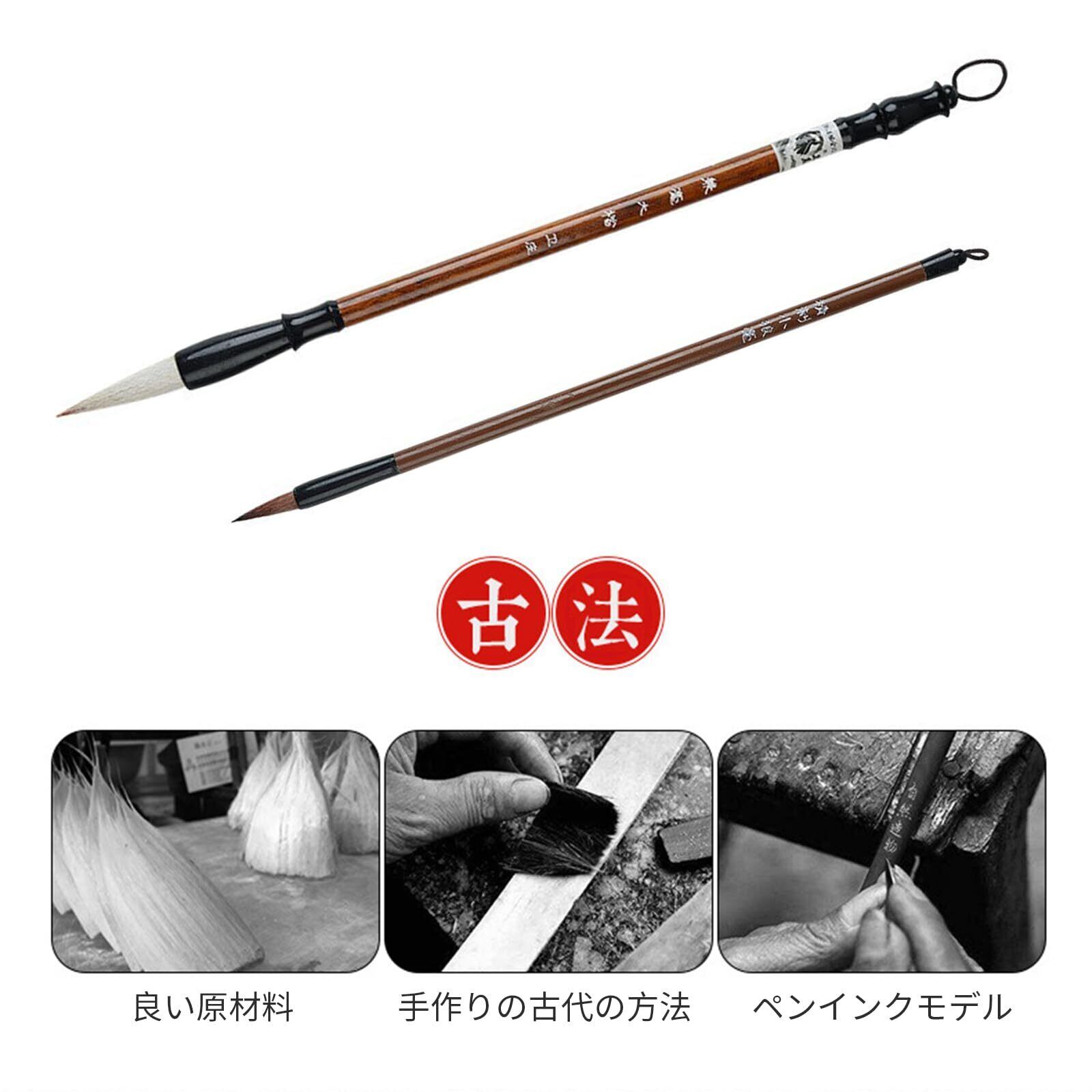 【仕様と素材】太筆:穂長40mm、穂径10mm,木製軸,動物の毛; 細筆:穂長20mm、穂径5mm,木製軸,動物の毛。 【学習】初心者の方でも、当社の筆を使えば、簡単にテクニックを習得できます。筆は弾力性と柔軟性に優れ、初心者がより正確に書けるようになります。良い練習経験を提供し、学習への興味をもたらす。 【書く】当社の製品は、練習中に初心者のスピードと手書きを助けることができる紙の上に滑らかです。この滑らかさは、見栄えの良い文字を書くのに役立ちます。高品質の筆は、より良い線を提供します。初心者にとって、筆と線をより正確にすることは重要です。 【耐久性】 当社の製品は耐久性に優れ、変形しにくく、毛が抜けにくいです。初心者の方には経済的で便利な選択です。様々な書体を柔軟に試すことができ、将来の学習の基礎作りに役立ちます。 【適用対象】書道を始めたい小学生、中学生、大人の方。 高品質のペンは、学習時により良いアシストを提供します。