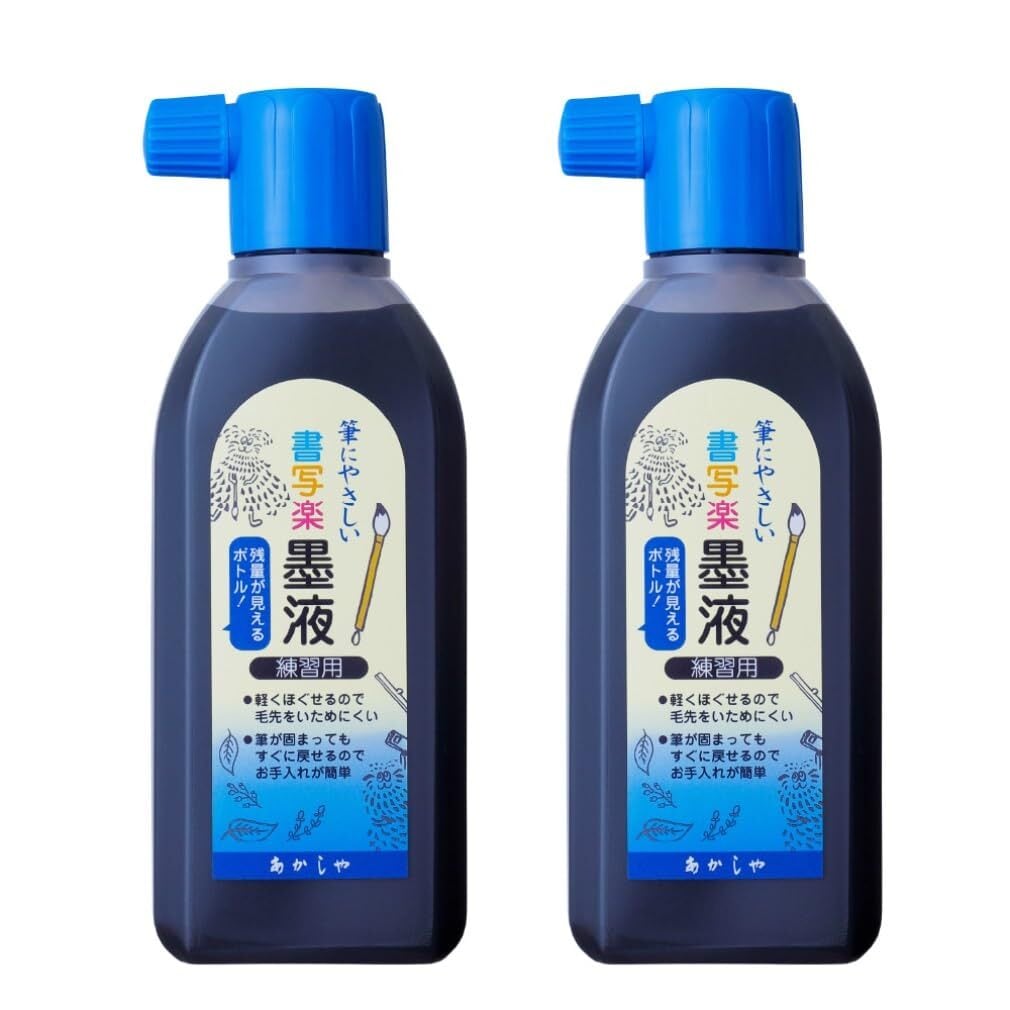 あかしや 墨汁 筆にやさしい書写楽墨液 180mL 2本パック AB-05-2P