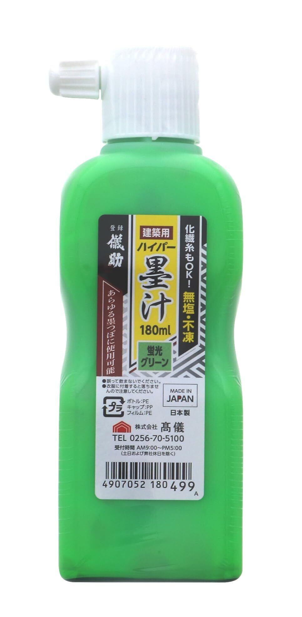 髙儀(Takagi) 儀助 建築用 ハイパー 墨汁 蛍光グリーン 180ml 日本製 墨付け 墨打ち 印付け 木材 合板 コンクリート サビない 凍らない 流れない 雨に強い 建築 土木 高儀 たかぎ