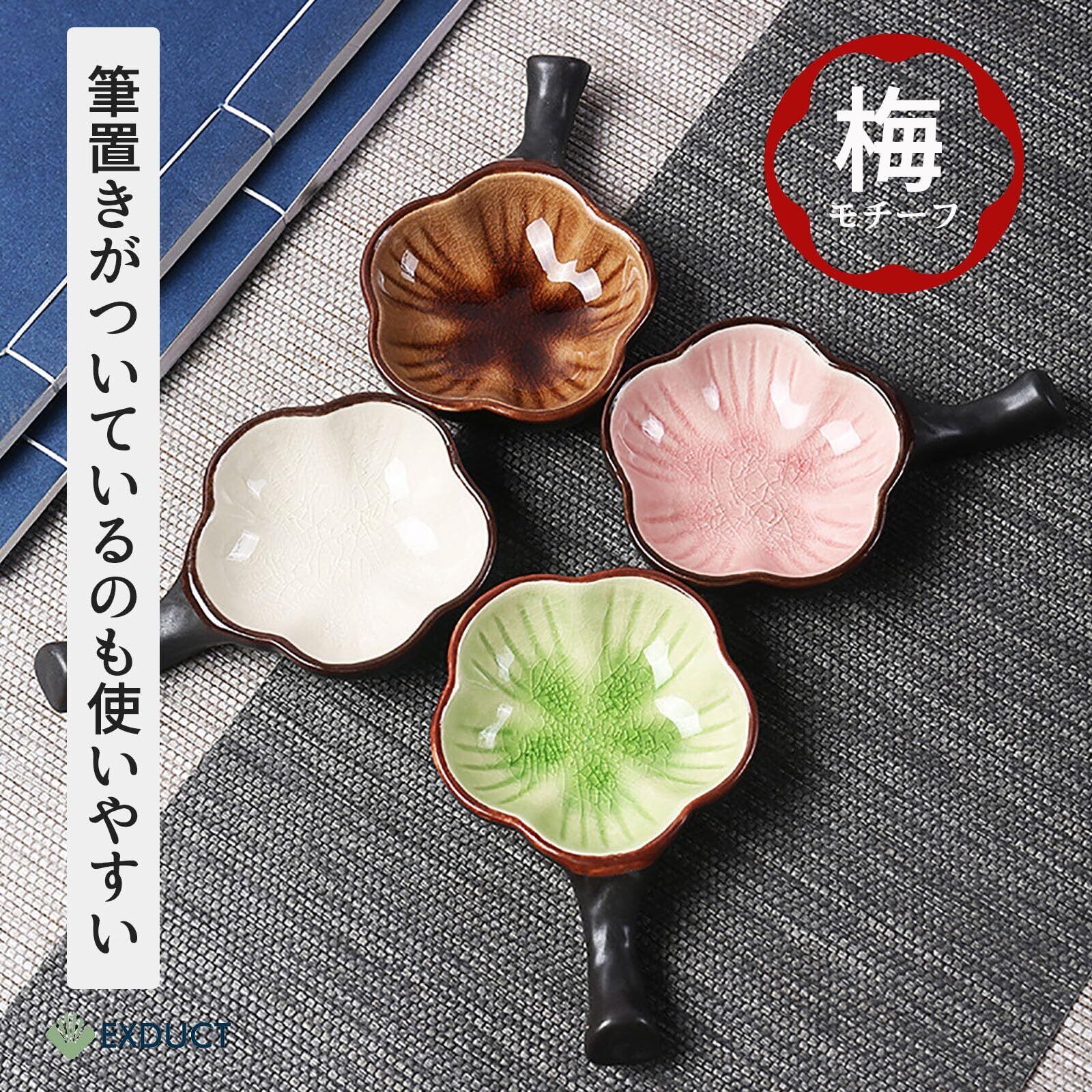 取っ手部分を筆置きとして使えます。艶のある美しい色合いと梅の花をモチーフにしたかわいいデザインとなっています。