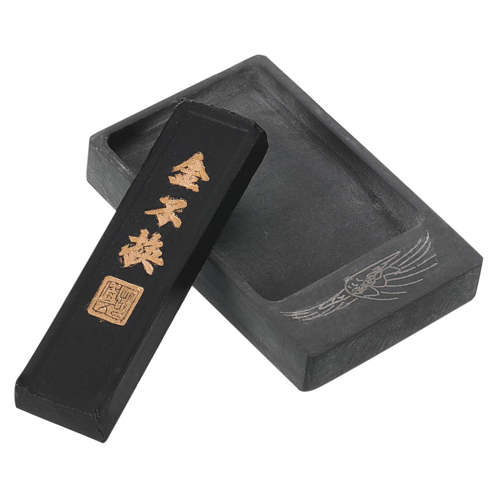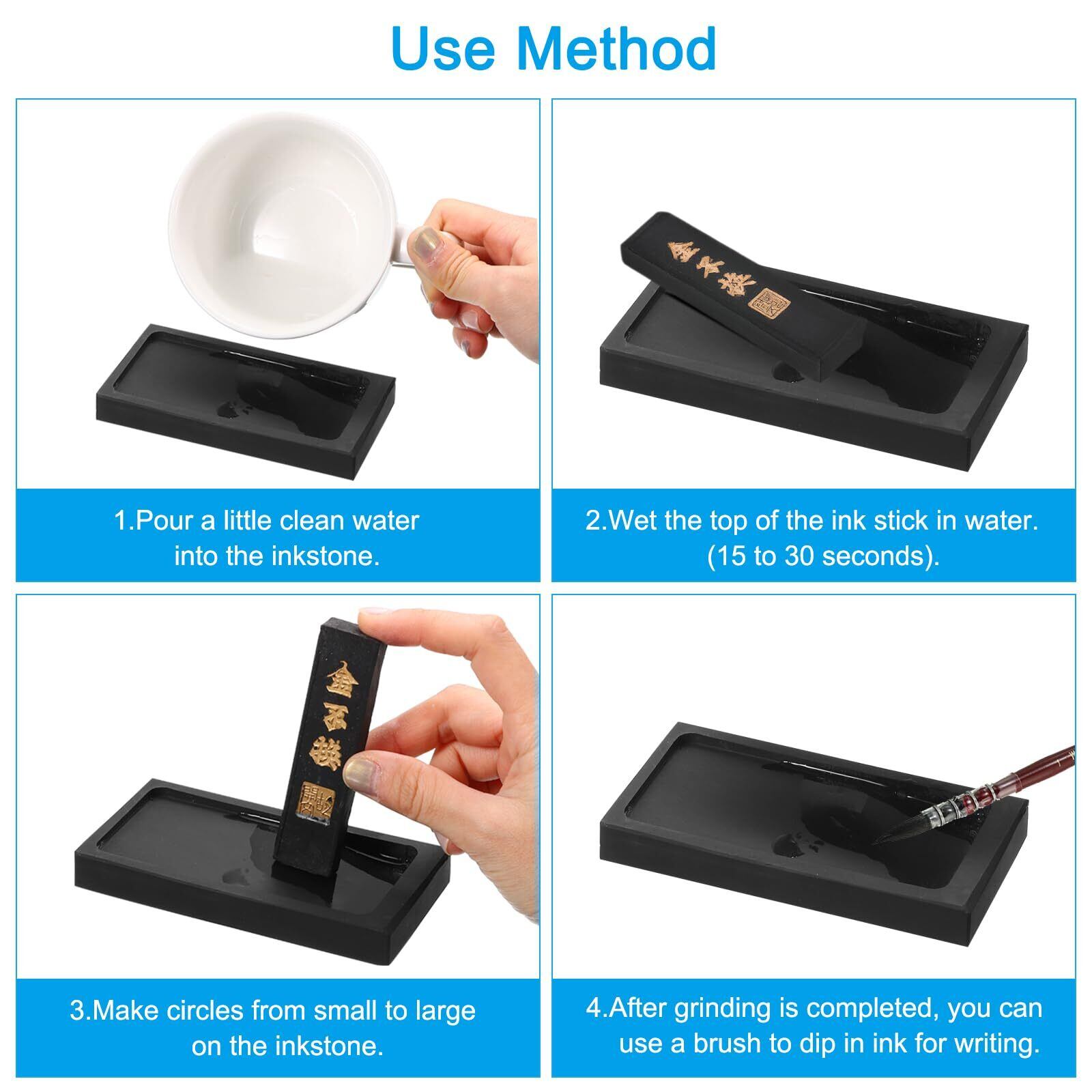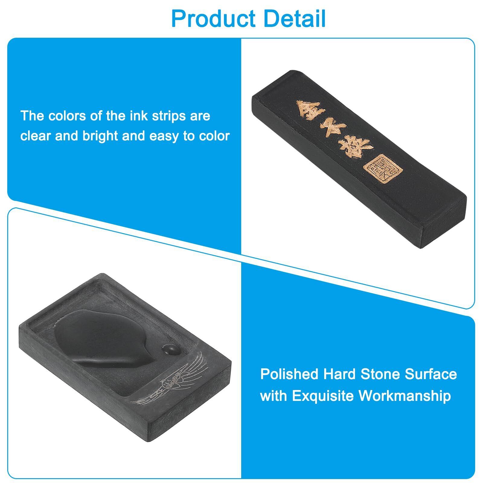 PATIKIL 中国書道用硯 インクスティック付き 正方形の硯トレイ 伝統的な書道の練習 絵画 描画用 黒