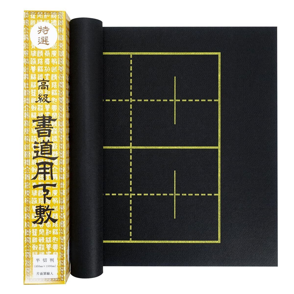 書道下敷き 黒フェルト 1.5mm 片面罫入り 2×8升 半切判 450×1500mm