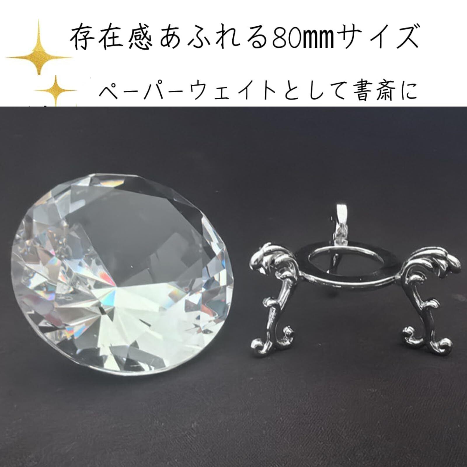 【特価セール】Shantia クリスタル 水晶 ダイヤモンドカット 80mm ペーパーウェイト 高品質 キラキラ 輝き 高い透明度 文鎮 装飾品 自分へのご褒美 多色透明(クリア 80mm 台座付き)