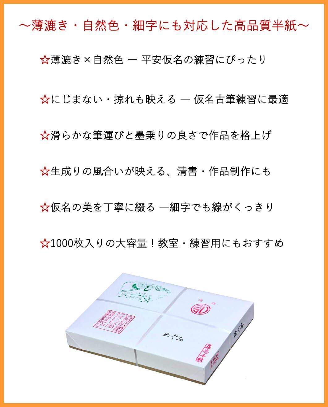 【2022最新】弘梅堂 書道半紙 かな用半紙 めぐみ 1000枚 にじまない 掠れも映える 仮名古筆練習に最適 伊予和紙