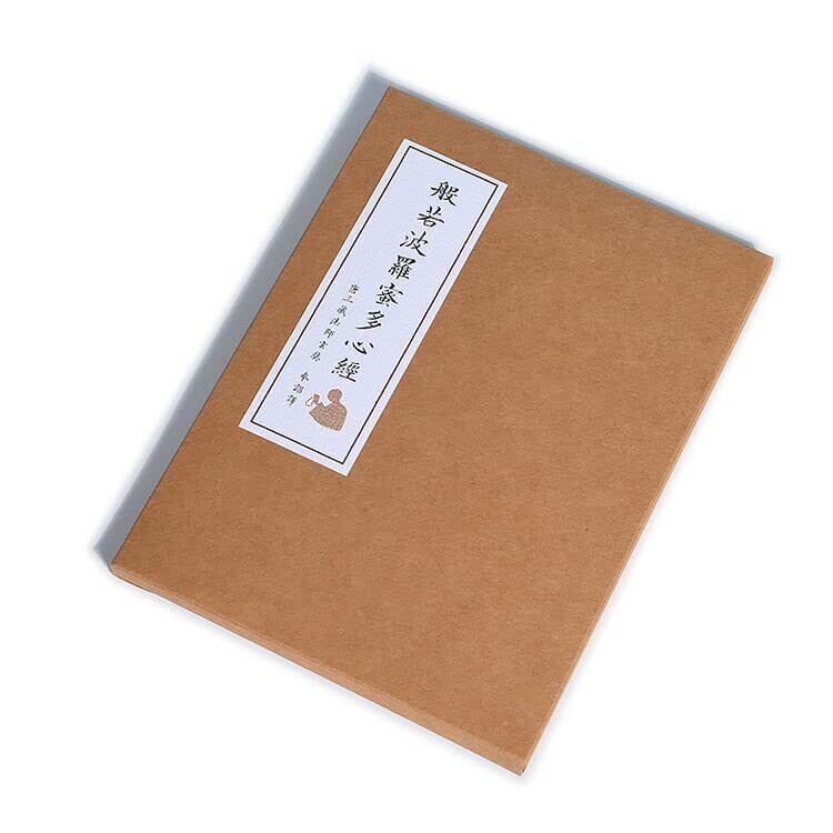 3.「写経帳紙質」:写経帳サイズ22*16.5 cm、表紙はクラフト紙、中には白色上質70 g厚紙を採用し、手軽に写経!