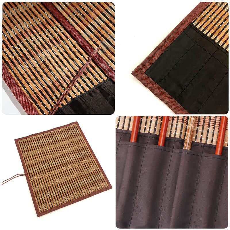 【優れた材質】竹と布を織り交ぜてつくられており、編み目が緊密で、長持ちします、落としても割れにくくなっております。竹製で通気性に優れており大切な筆の持ち運び用として適しています。筆を巻いた後は紐で結んでください。