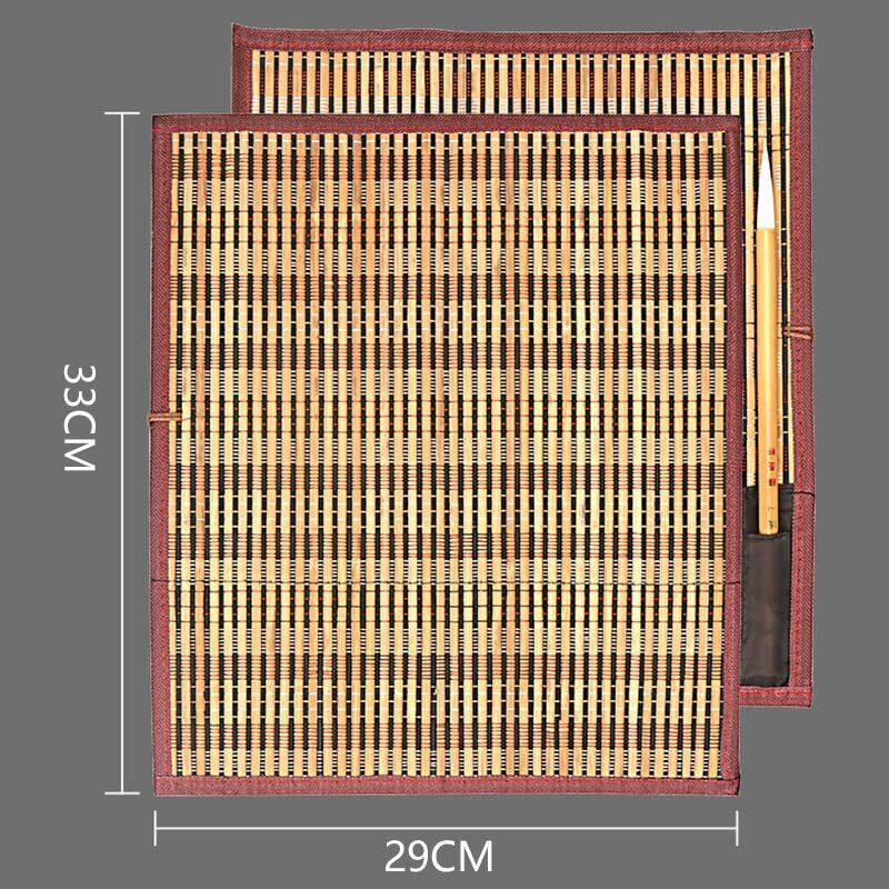 LIKENNY 筆巻き 竹製 筆 収納 持ち運び 習字 ペンケース 書道 保管 ポケット付き コンパクト 毛筆 細竹皮筆巻 33cm × 29cm 巻き 手織筆巻 筆入れ