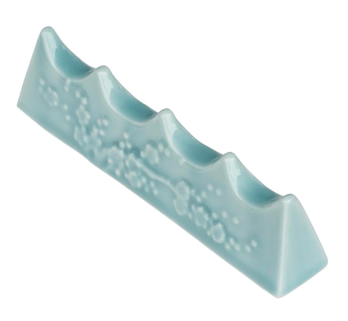 【弘梅堂 筆置き 梅彫 青磁 美濃焼】 ・お習字の途中で、筆を休めるときに使う筆置きです。シンプルで飽きのこないデザインです。 ・使用用途 お習字の途中、筆を休めるときに使用 ・商品サイズ 128×23×33mm ・材質 陶器
