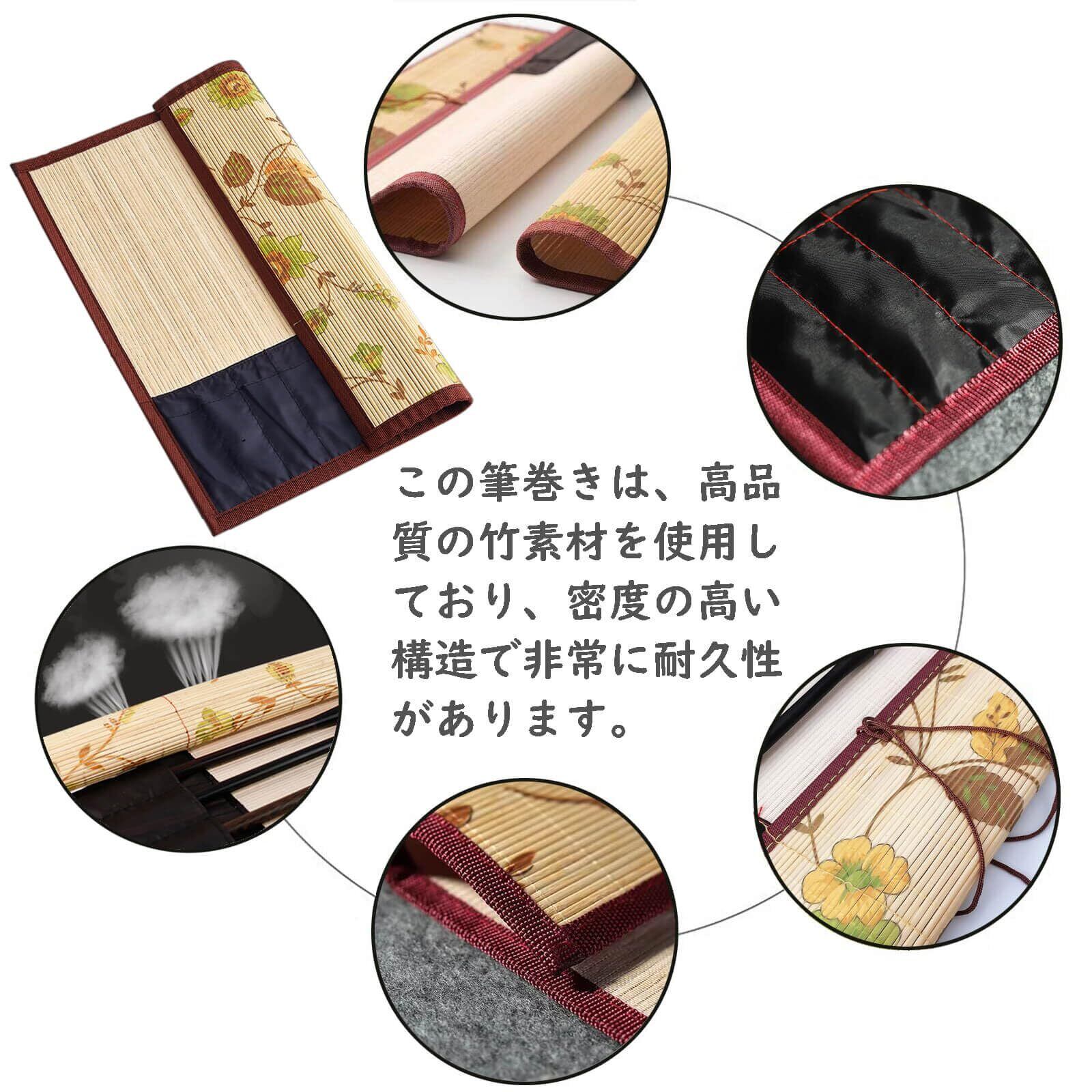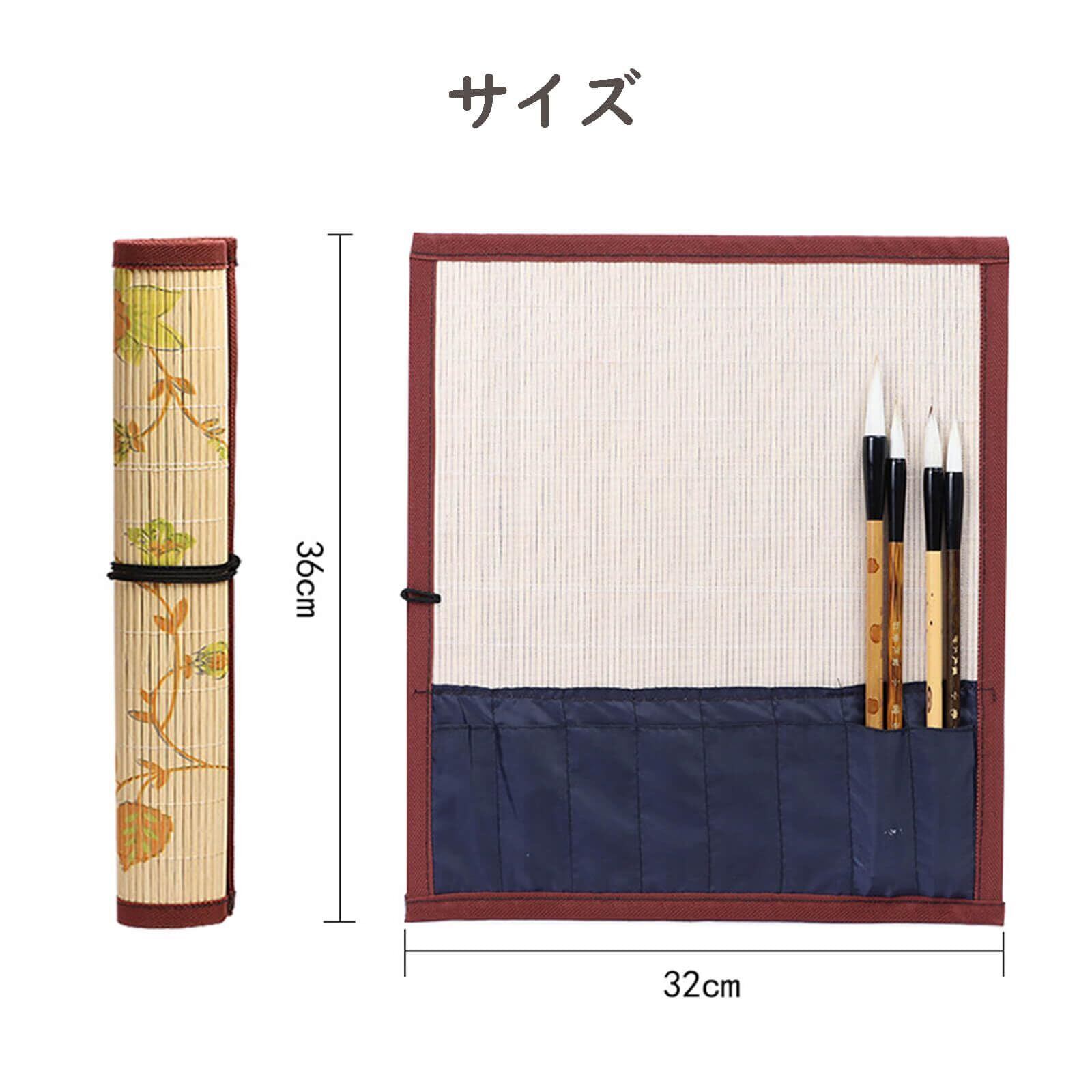 筆巻き 書道 30cm*26cm 花柄 竹製 ポケット付き コンパクト ヴィンテージスタイル 軽量 通気性 筆入れ 筆ケース 収納 手織筆巻 持ち運びが簡単 習字筆 7本の筆を収納