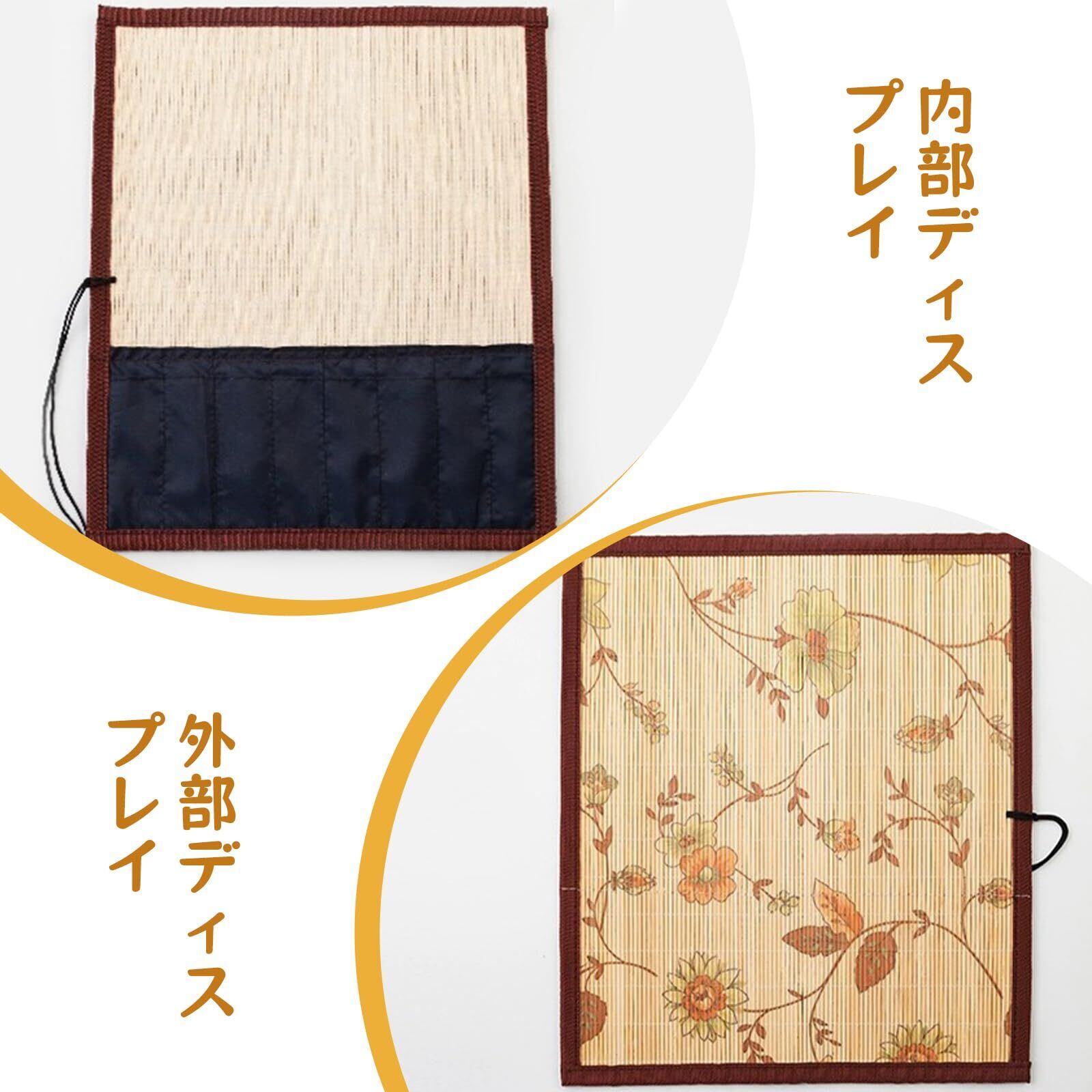【花柄の竹製筆巻き】当社の筆巻きは、エレガントでクラシックなブラシ収納ポーチで、素敵な花柄がブラシカーテンをよりエレガントに見せています。ブラシの持ち運びに使用し、外出時にかさばらずに簡単に丸めて収納することが可能です。