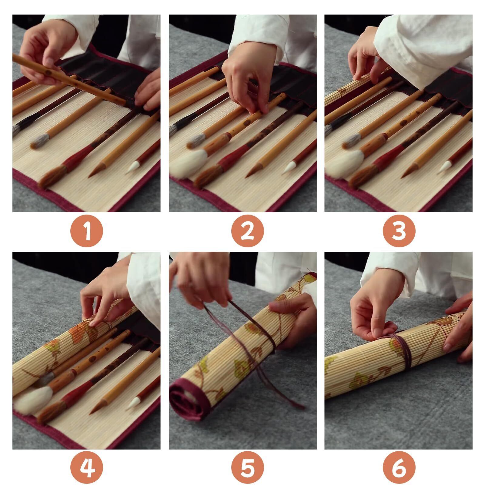 【上質な素材】この筆巻きは上質な竹素材を使用しており、しっかりと編み込まれていて、通気性がよく、耐久性があり、ブラシカーテンは軽いので、外出時に持ち運ぶのがとても簡単です。