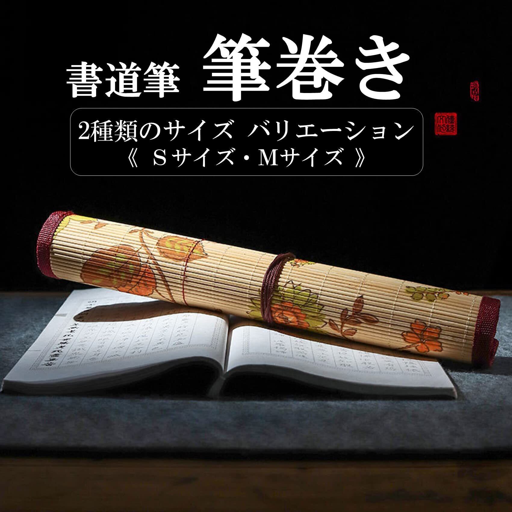 【在庫処分】NOELAMOUR 筆巻き 書道 筆入れ 筆ケース 竹製 花柄 ポケット付き 筆 収納 保管 持ち運び (花柄 Mサイズ)