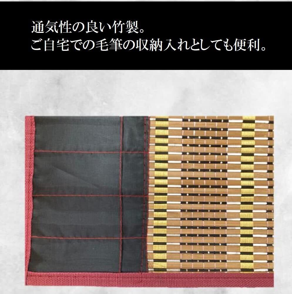 [pkpohs] 筆巻き ポケット付き 筆 収納 持ち運び 書道 毛筆 竹製 コンパクト 縞模様