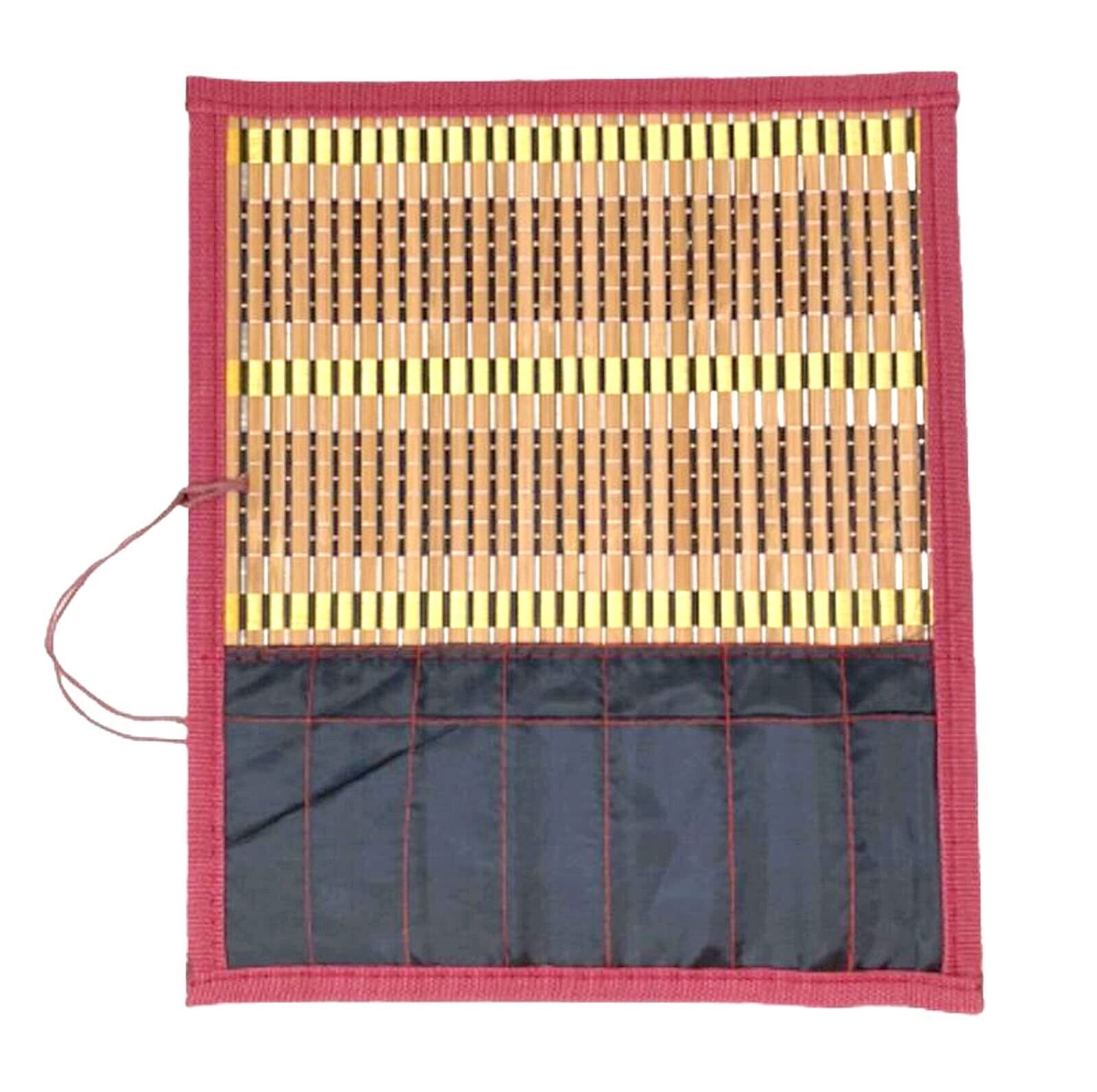[pkpohs] 筆巻き ポケット付き 筆 収納 持ち運び 書道 毛筆 竹製 コンパクト 縞模様 (縞模様, S)