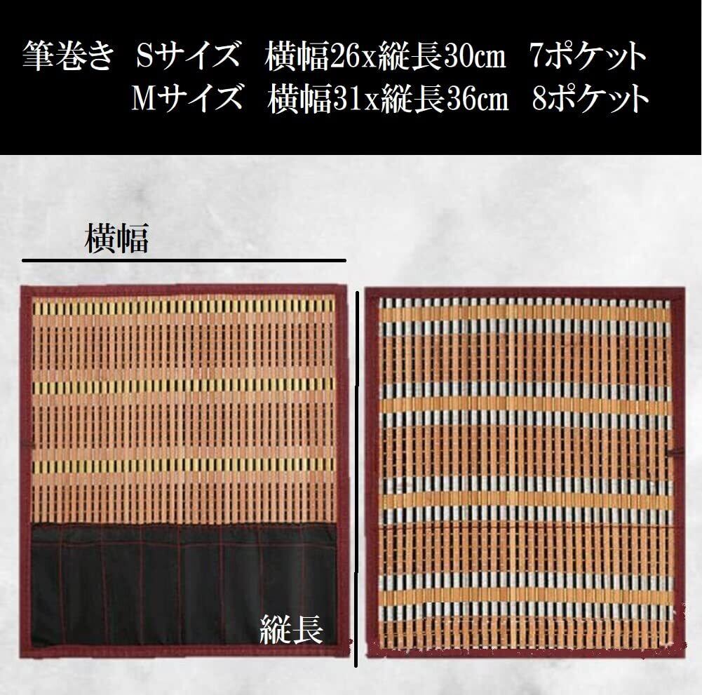 Sサイズ:26ⅹ30㎝ 7ポケット Mサイズ:31ⅹ36㎝ 8ポケット ご使用後は、筆を取り出して、広げて乾燥させて湿気をとばして、お手入れ下さい。
