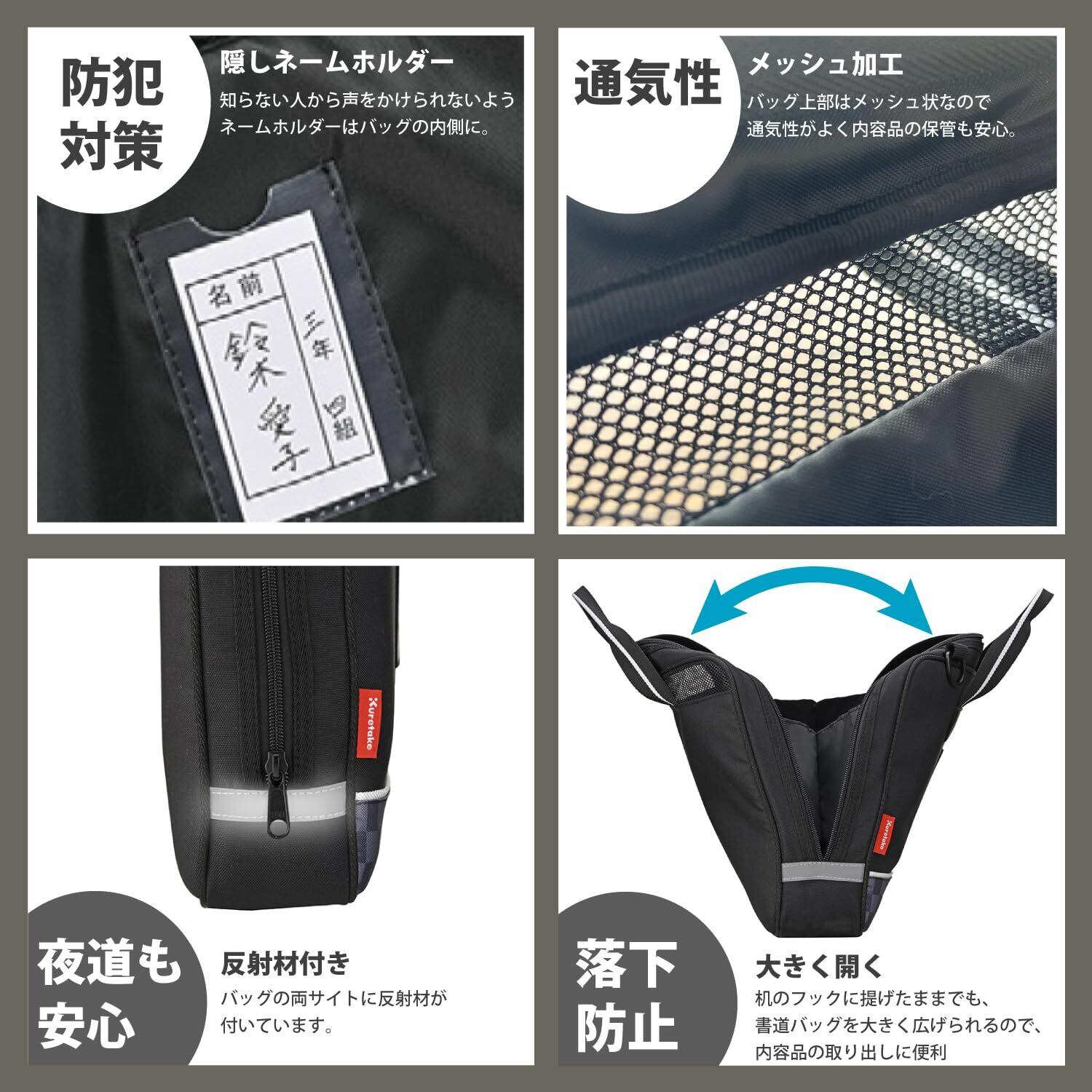 ・バッグの側面に落下防止対策が施されているので、机のフックに提げたままでも大きく開き中身の出し入れ可能です。