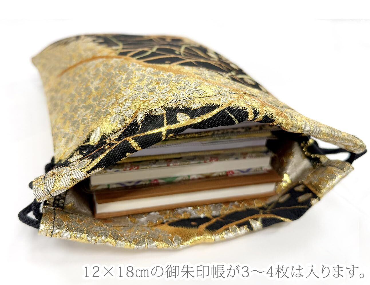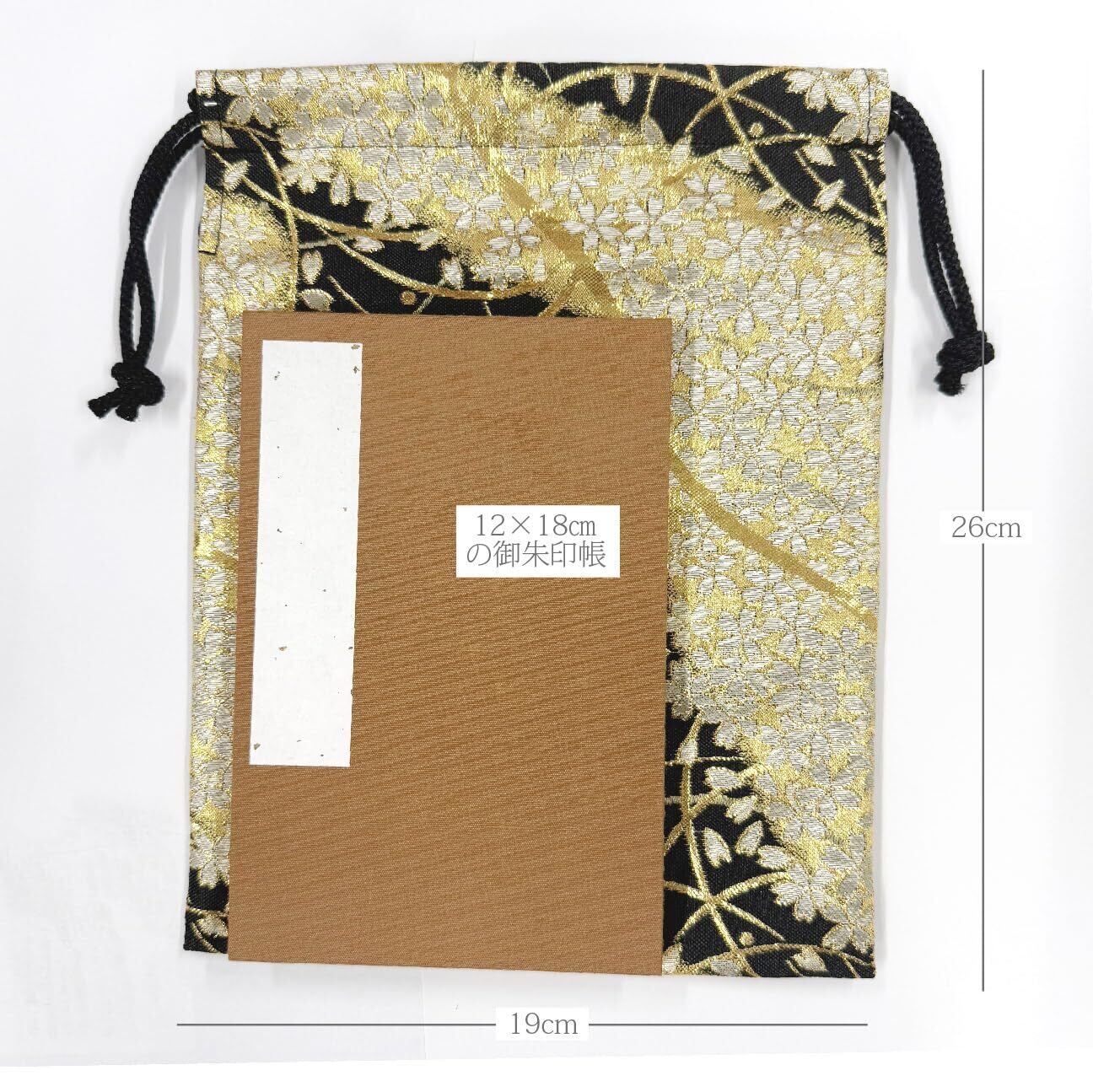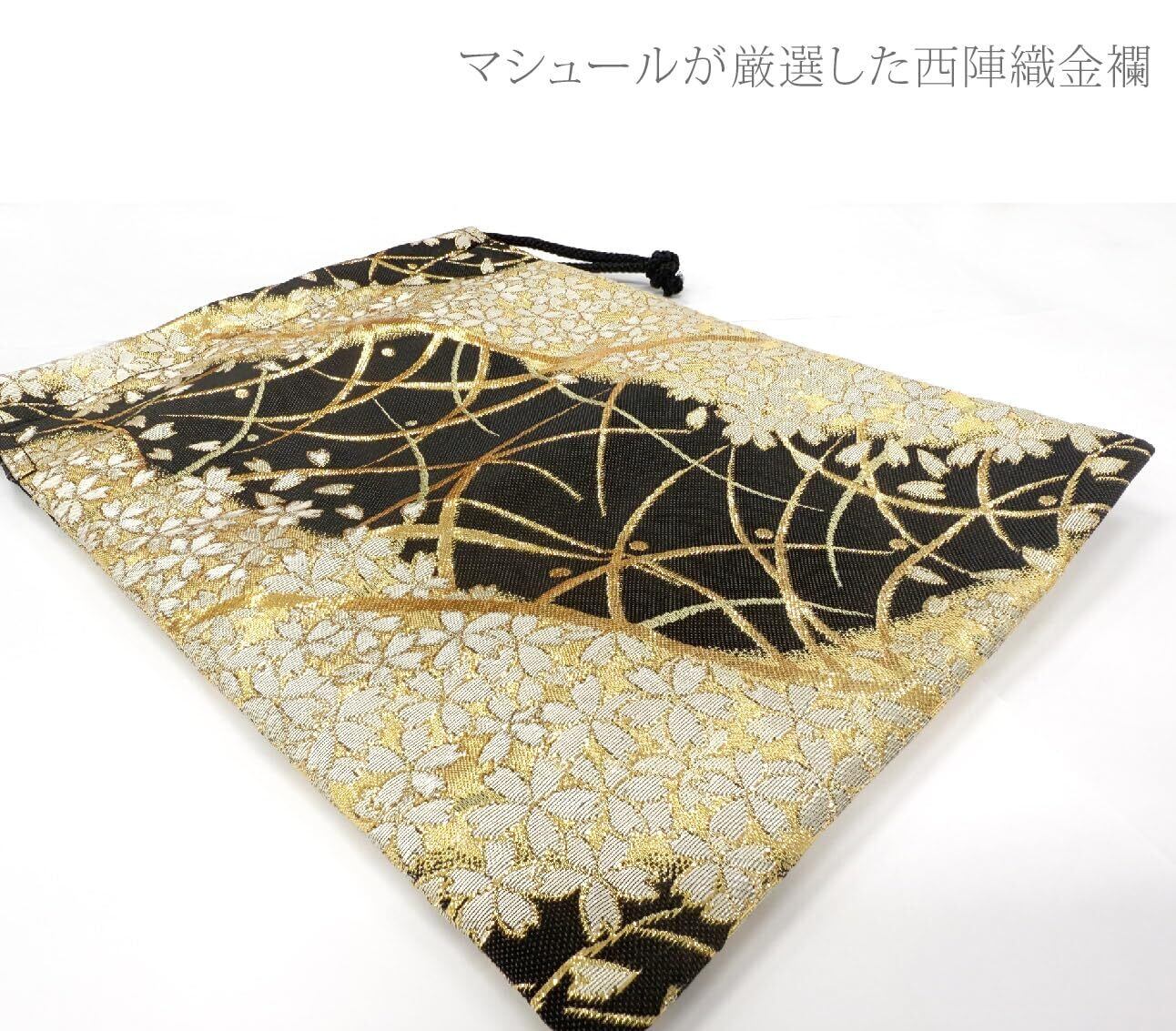 [マシュール] 御朱印帳袋 朱印帳入れ 19×26㎝ 小物入れ 巾着袋 日本製 金襴 京都 西陣織【桜林 黒】