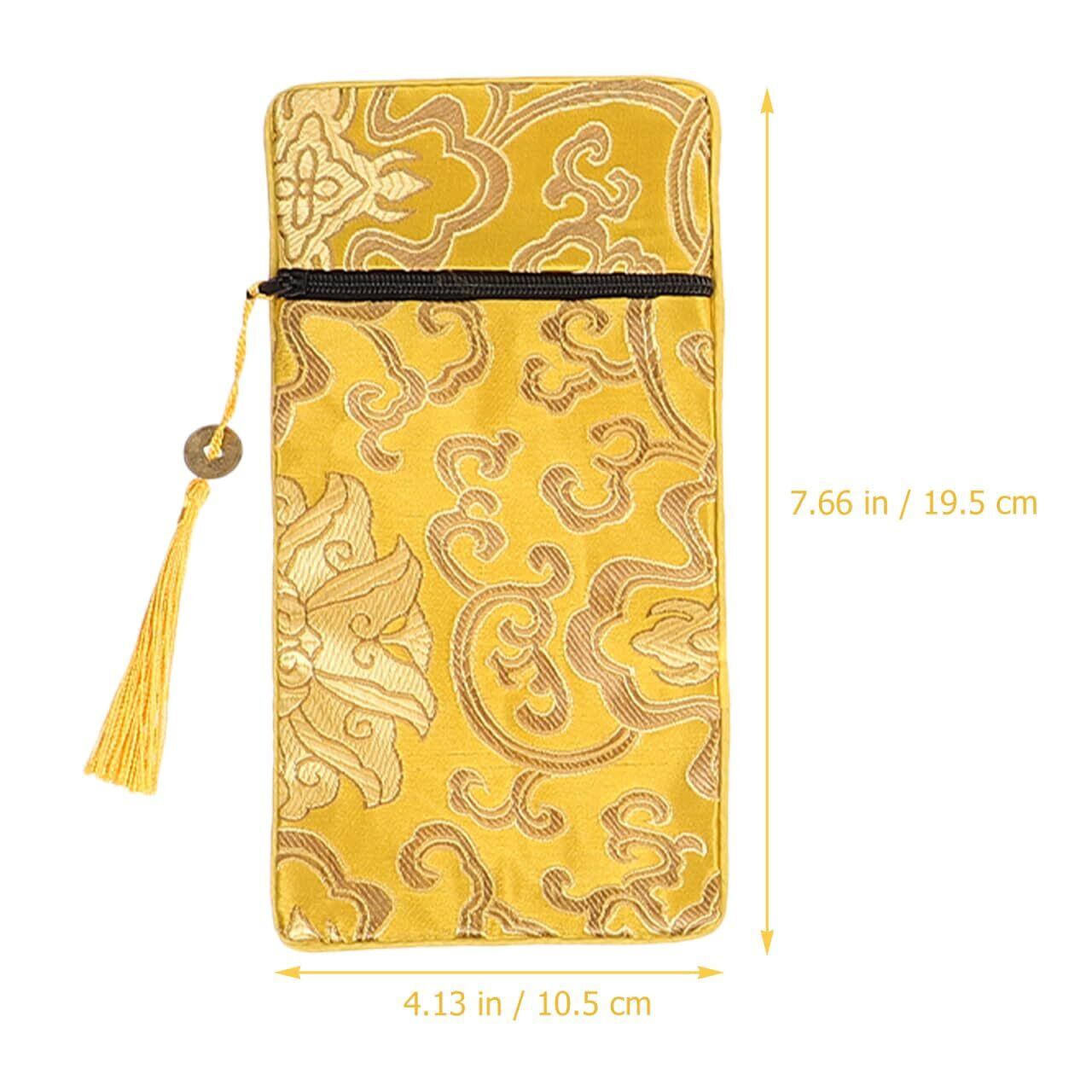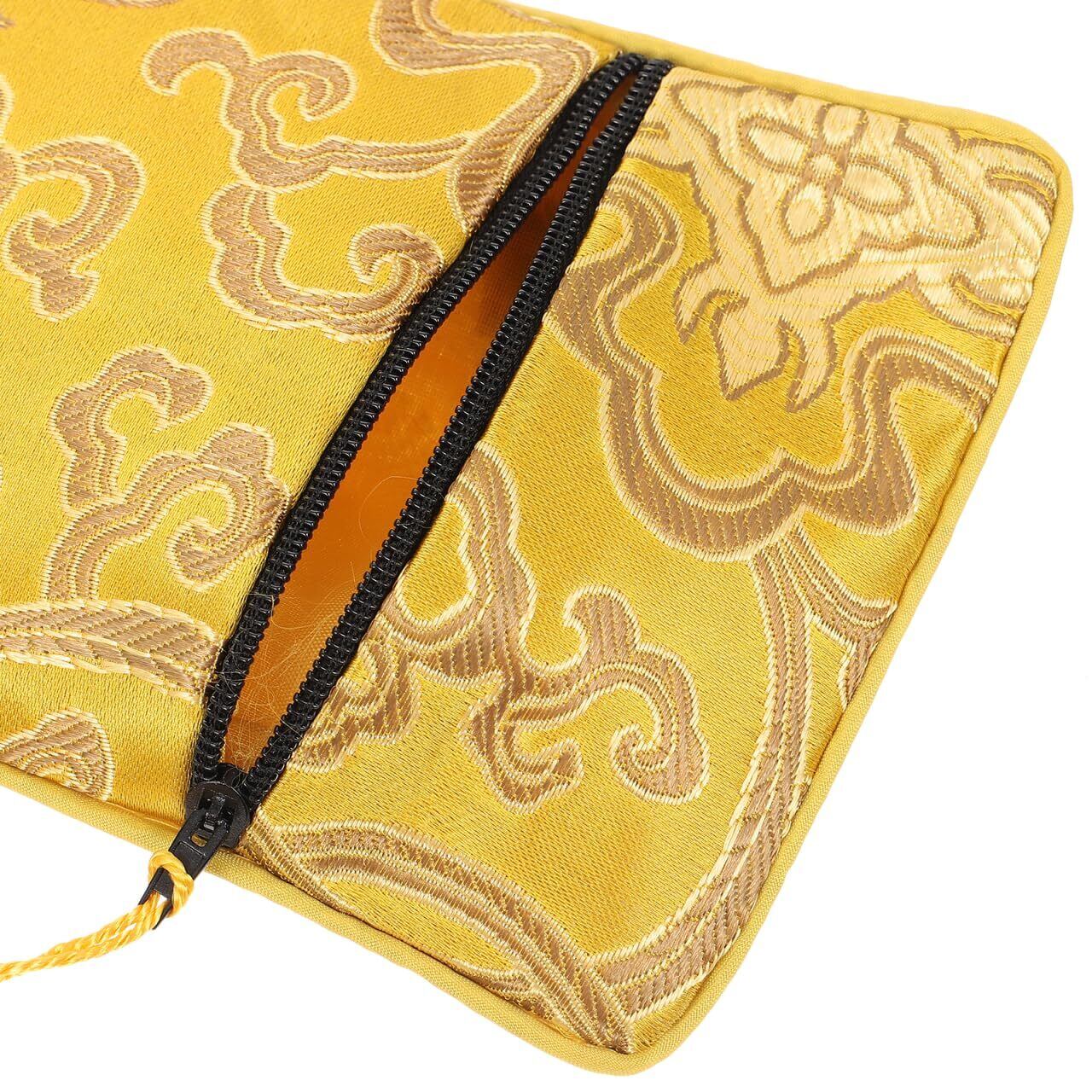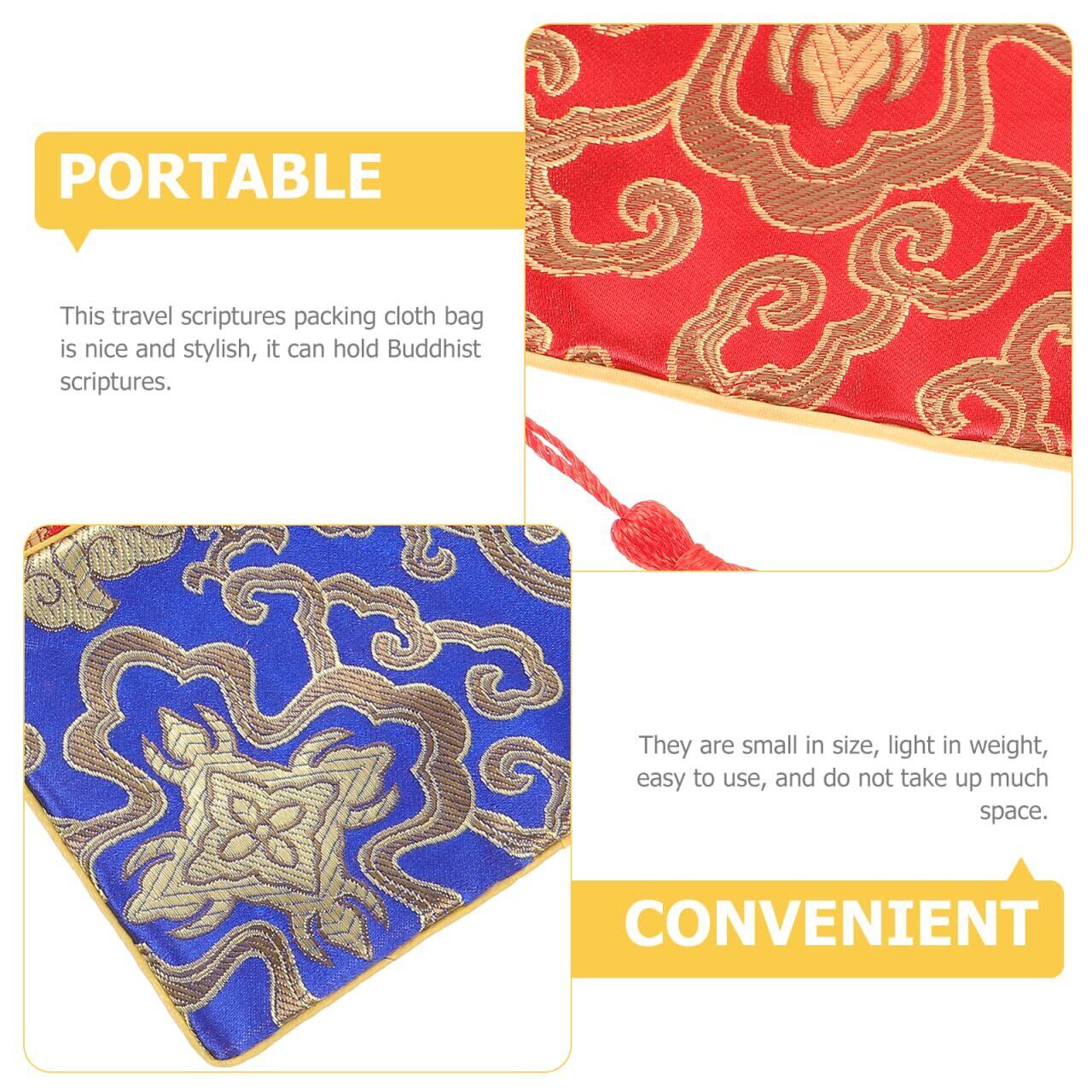 Kisangel 龍柄ブロケード経典入れ 4個セット ジッパー付き コンパクト仏具ポーチ 軽量お経袋 書道用具収納に最適
