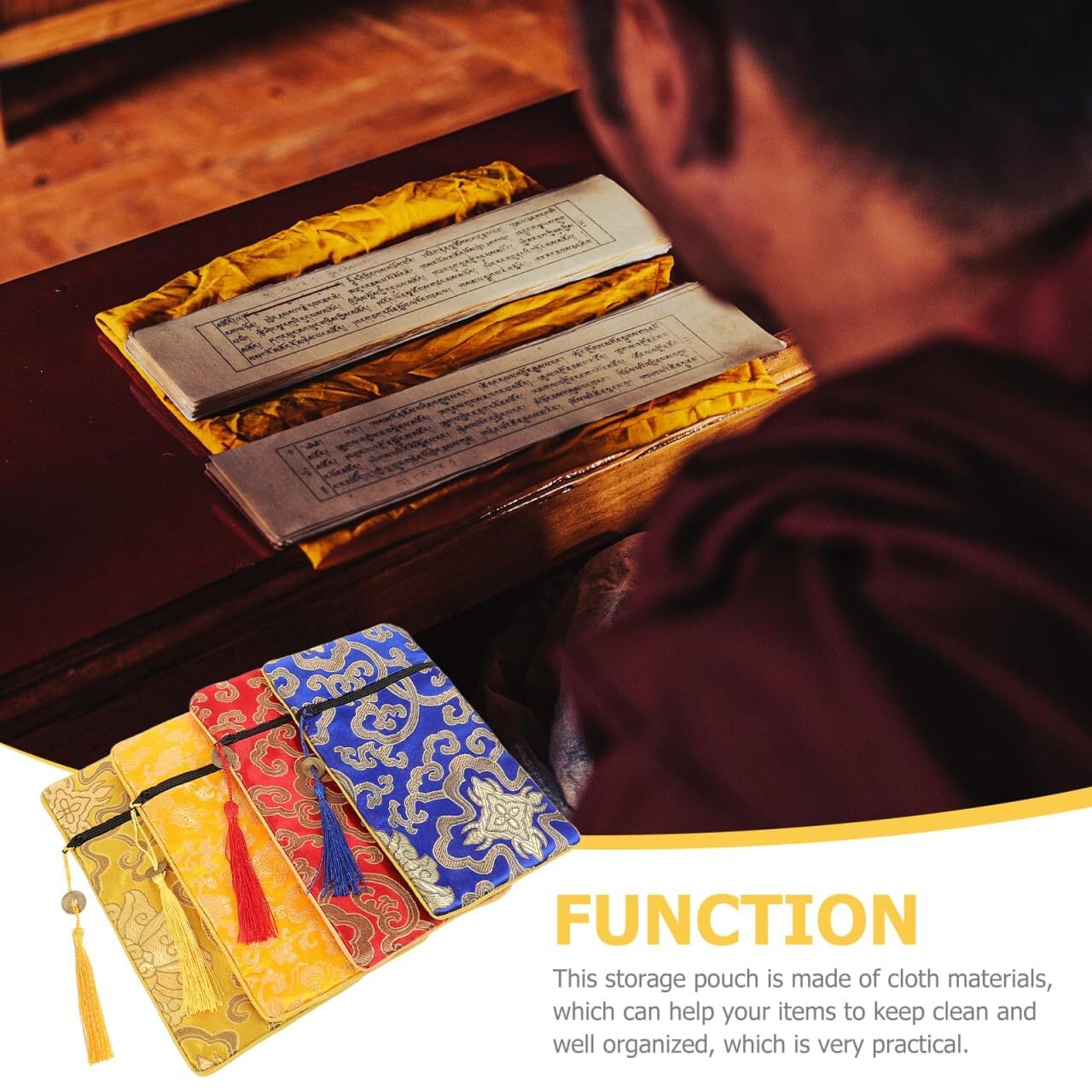 多用途で実用的な収納ポーチ:仏教経典以外にも書道用具や小物の収納に適しており、整理整頓に役立ちます。シンプルかつ機能的なデザインで幅広いシーンに対応。