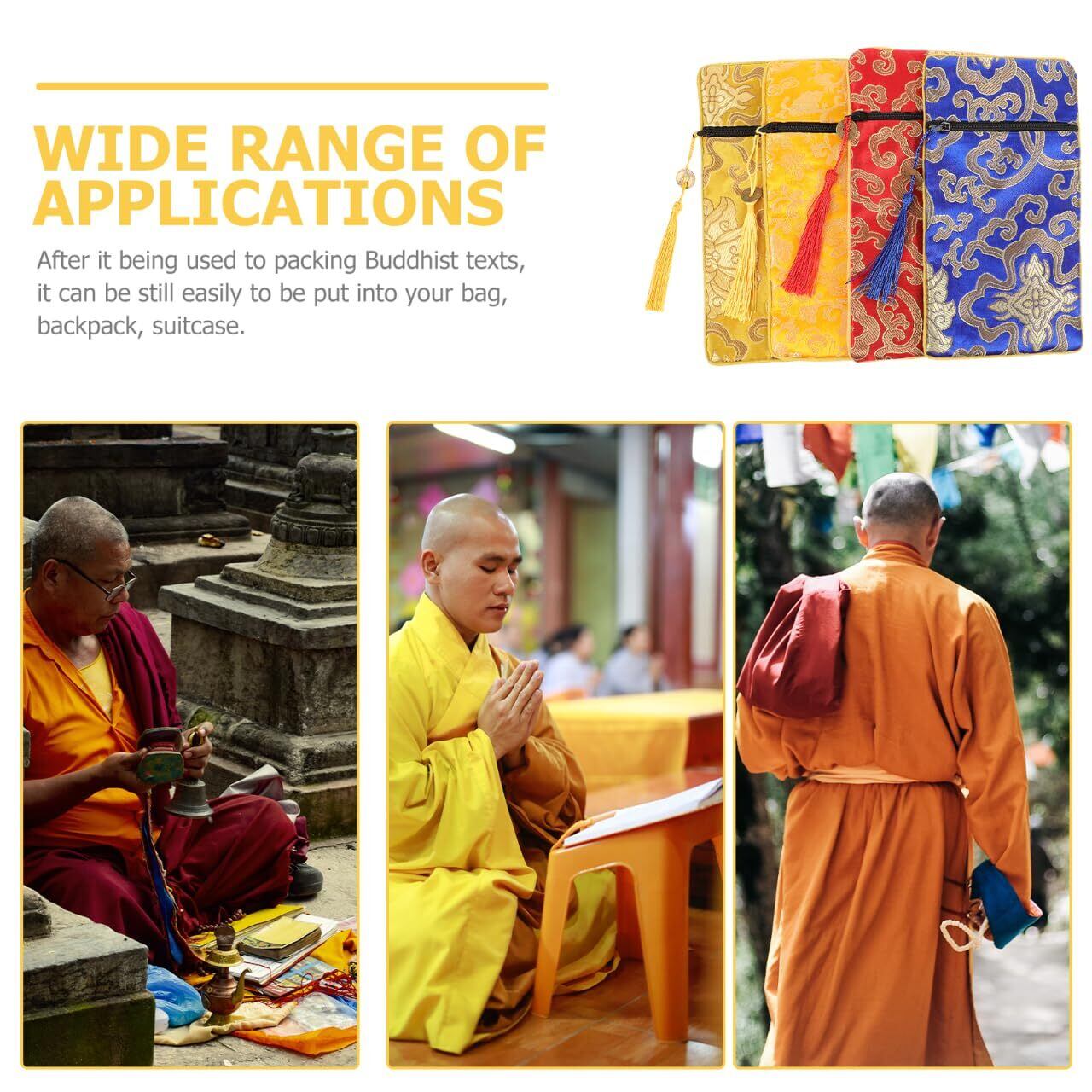 【新着商品】Kisangel 龍柄ブロケード経典入れ 4個セット ジッパー付き コンパクト仏具ポーチ 軽量お経袋 書道用具収納に最適