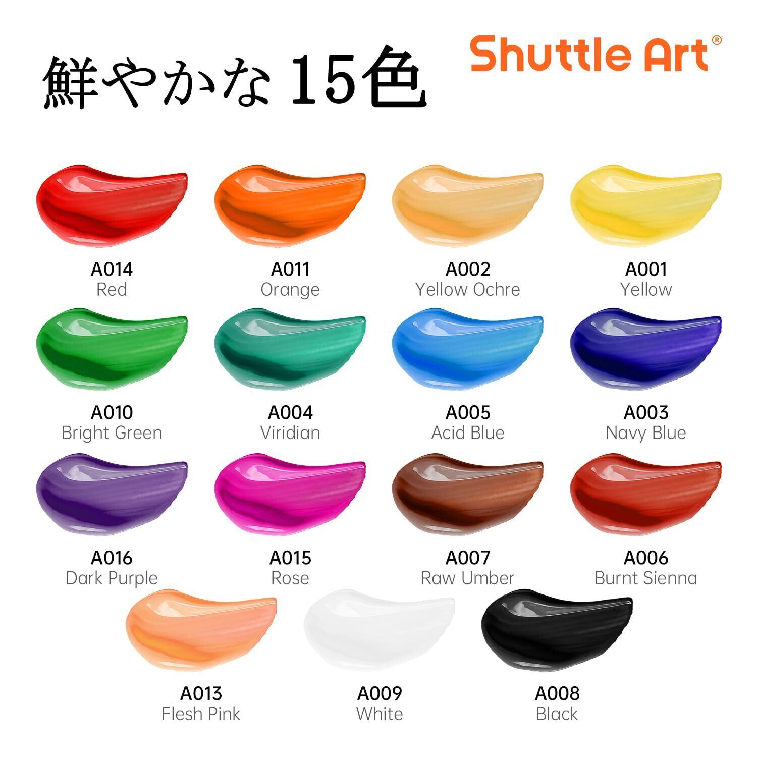 Shuttle Art アクリル絵の具 アクリル顔料 15色セット 速乾 耐久 チューブ 12ml 手作り 布/石/ガラス/セラミックに描ける 子供用 イラスト 塗り絵 クラフト 美術 画材 宿題 初心者 専門家