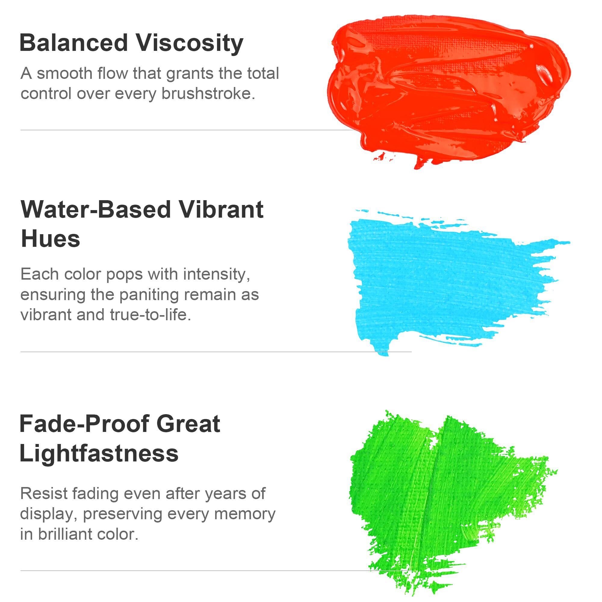 【多用途】AUREUOアクリル絵の具はすぐに乾き、さまざまな表面によく付着できます。防水性と耐久性のある色を誇るこれらの絵の具は、壁、紙、ガラス、岩、キャンバス、セラミック、プラスチック、金属など、簡単に完璧に塗れます。