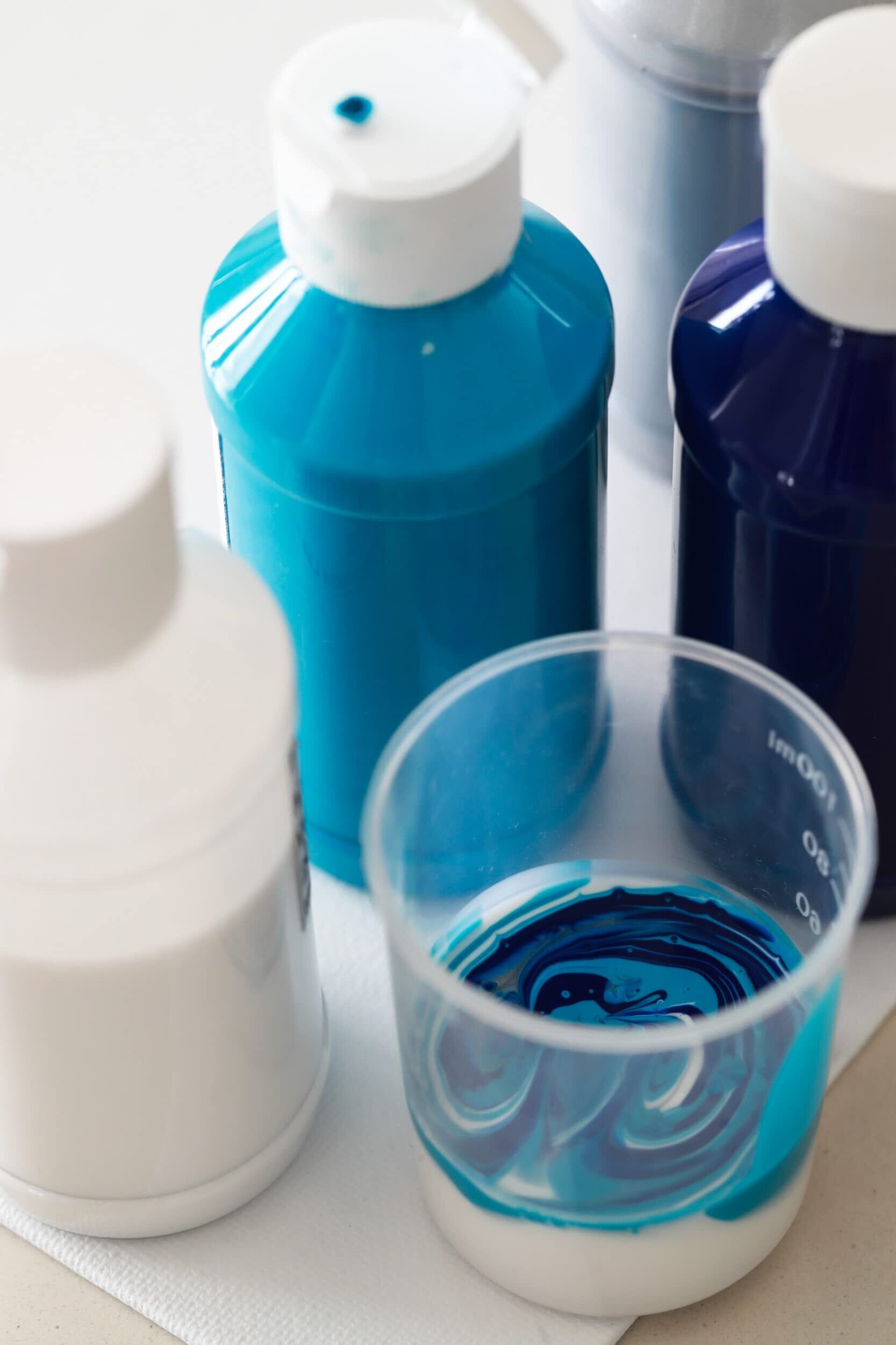 絵具の色同士が混ざらず、マーブル模様ができるポーリングメディウムが、予めステューディオアクリリック絵具に混合された水性アクリルペイントです。