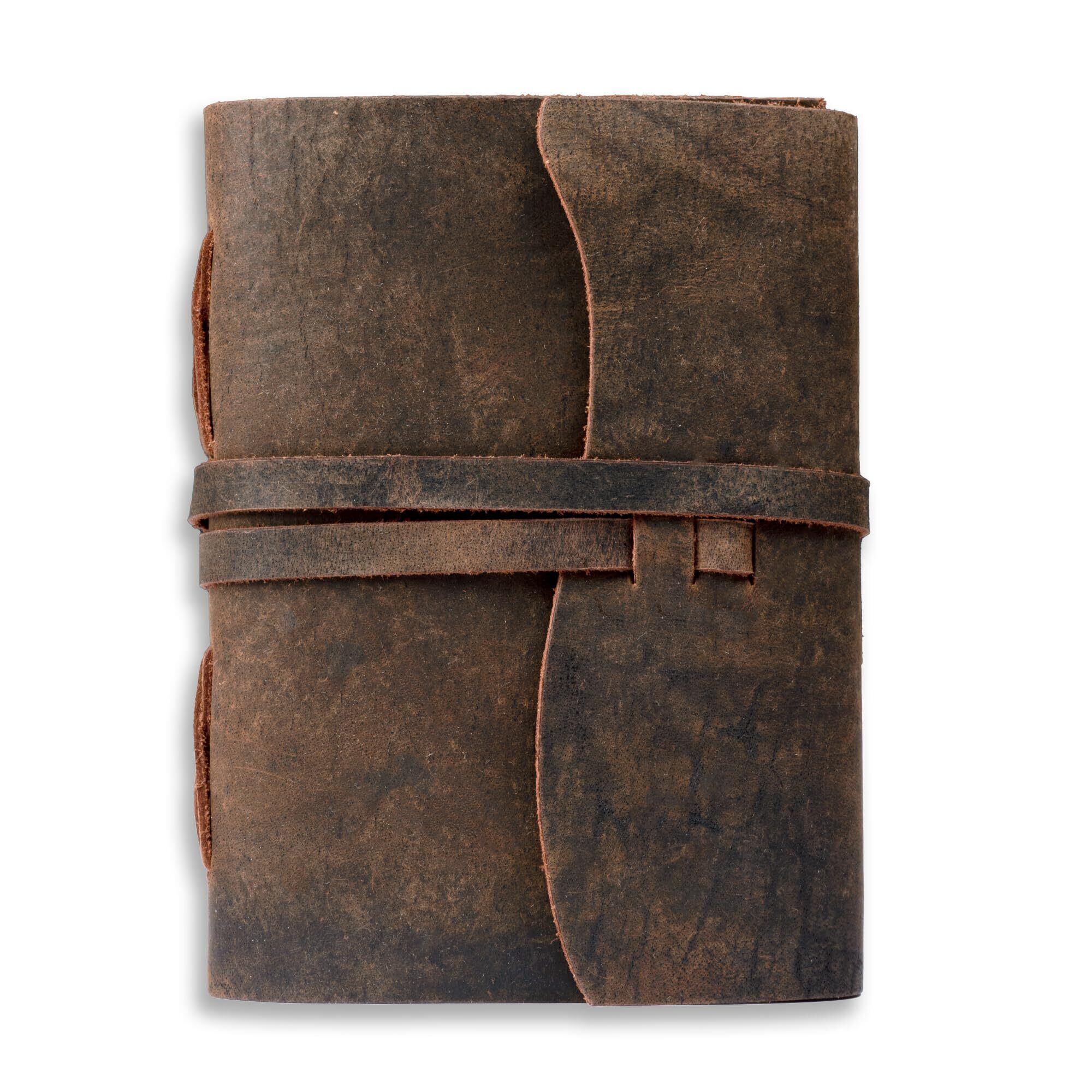 LEATHER VILLAGE レザー綴じジャーナル - ダークブラウン、7インチ×5インチ、220ページ - ヴィンテージの白紙日記、書き込み、描画、スケッチブック、旅行ノートに最適 - 女性にも男性にも最適