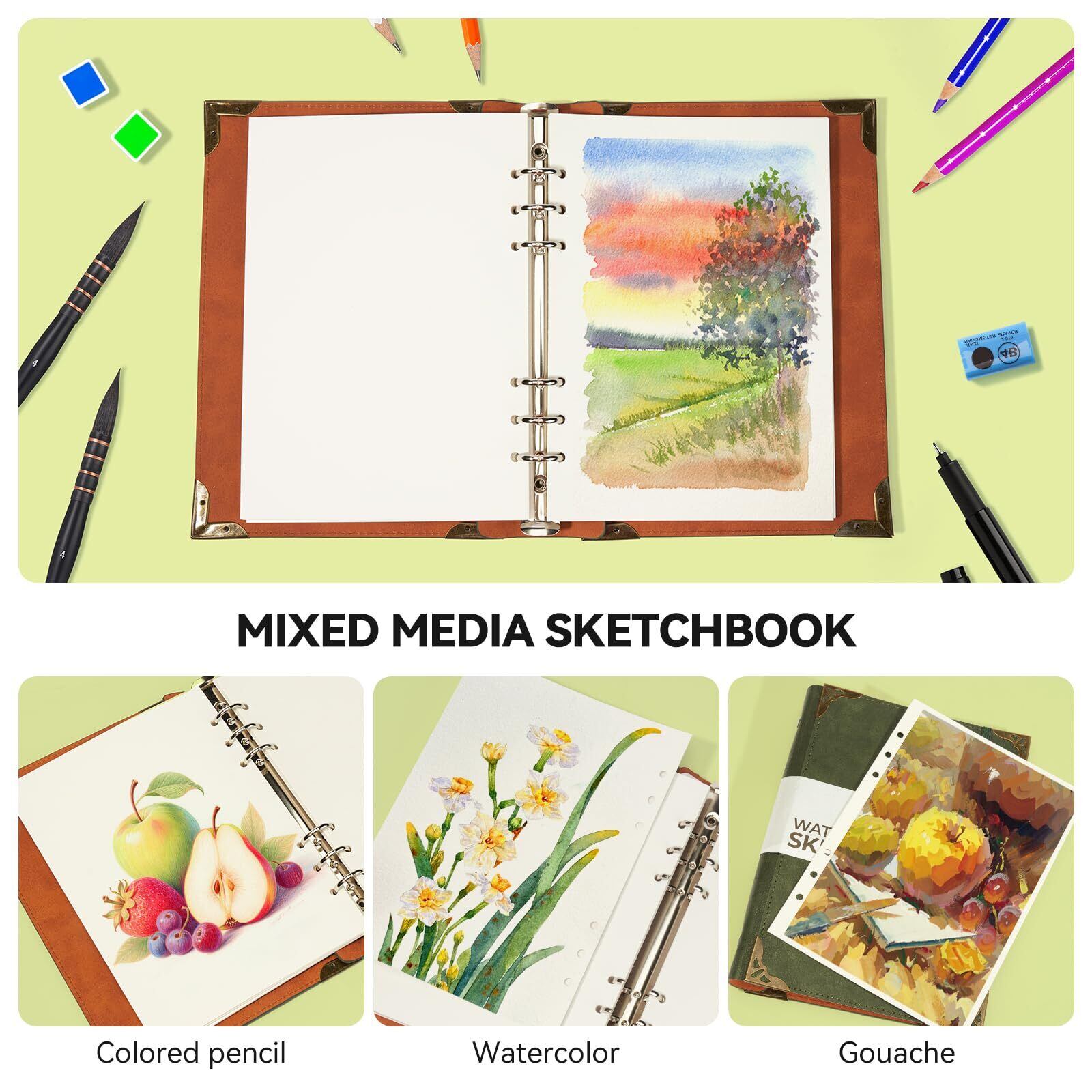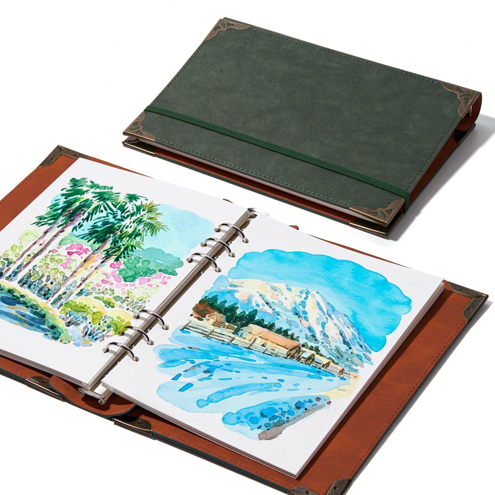 簡単に取り外して表示:便利な詰め替え可能なデザインが特徴のこの水彩日記帳は、ディスプレイや保管のためにページを簡単に取り外すことができ、外出先でのアーティストに最適です。ゴムバンドのデザインにより、ノートブックを簡単に固定できます。