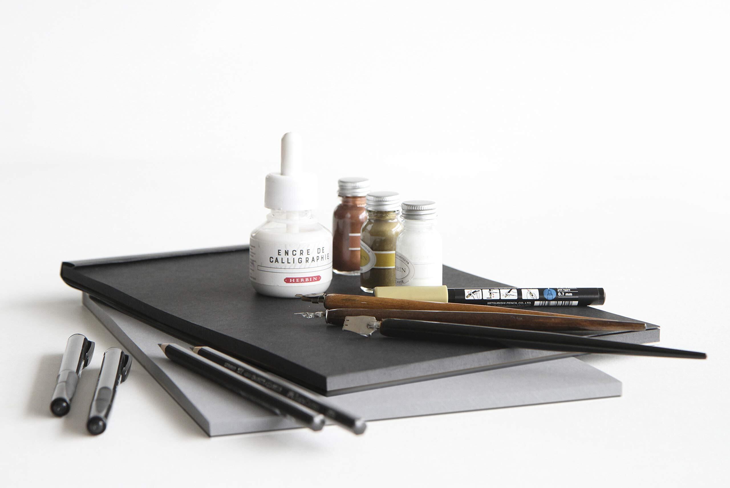 漆黒基調のマヤペーパーはセルロースベースの120g /㎡の両面高平滑仕上げでとても滑らかな紙質・書き心地です。 細鉛筆、フェルトペン、グラフライナー、ニブ式ペンの描画に特に適しています。 表面は非常に耐性がありながら速乾性。 紙自体がしっかりしている為、連続/重ね筆記や消しゴムの使用後もケバ立ちが少ない紙です。
