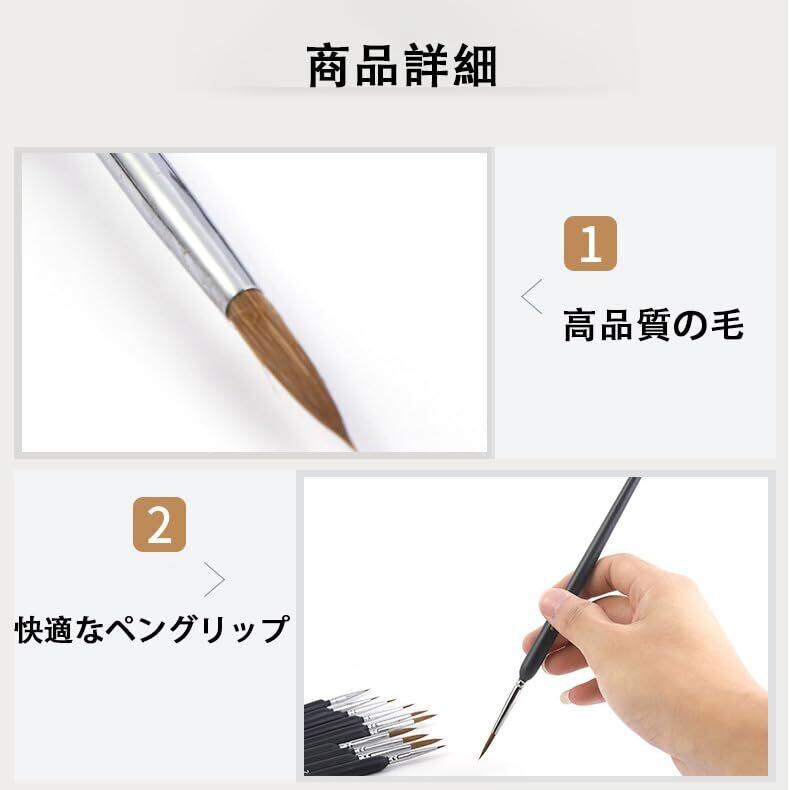 1.【セット内容】超極細00000号の塗装筆6本セットで、必要な極細な作業に最適です。 2.【手触りよい木製ハンドル】短く滑らかなウッドハンドルは、正確なコントロールを提供し、手のひらにぴったりし、長時間の作業でも疲れにくい。スタイリッシュなペイント仕上げ、毛が抜けにくい銅管、快適で耐久性があります。 3.【金属が圧着して】筆致が鋭敏で,ペン先が鋭く尖っている。 4.【上質な品質】ナイロン製の筆だから、繰り返して使っても毛先が元の形に戻れ、毛抜けも無い。 5.【幅広い用途】プラモデル、フィギア、素焼きの陶器、模型、油絵、アクリル塗料、水彩、や顔ペイントに適用されます。仕事柄細かい作業が多い方にとって趣味使用も兼ねております。