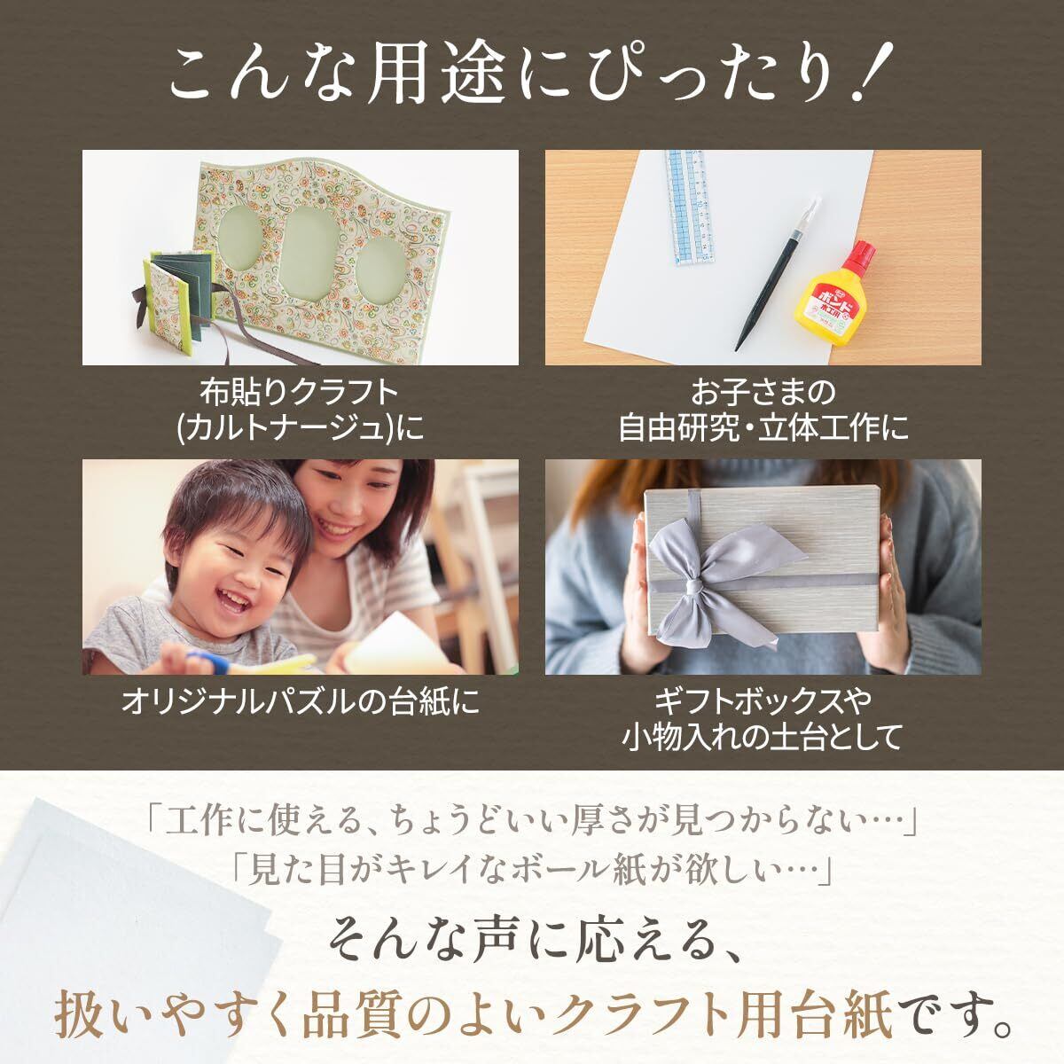 カルトナージュや、各種工作に使える台紙です。 1mmのしっかりとした紙厚があり、強度も高くジグゾーパズルづくりなどにもおすすめです。 日本製で品質も良く、安心してご使用頂けます。 ※色味にバラつきがある場合がございますが、不良品ではございません。予めご了承ください。