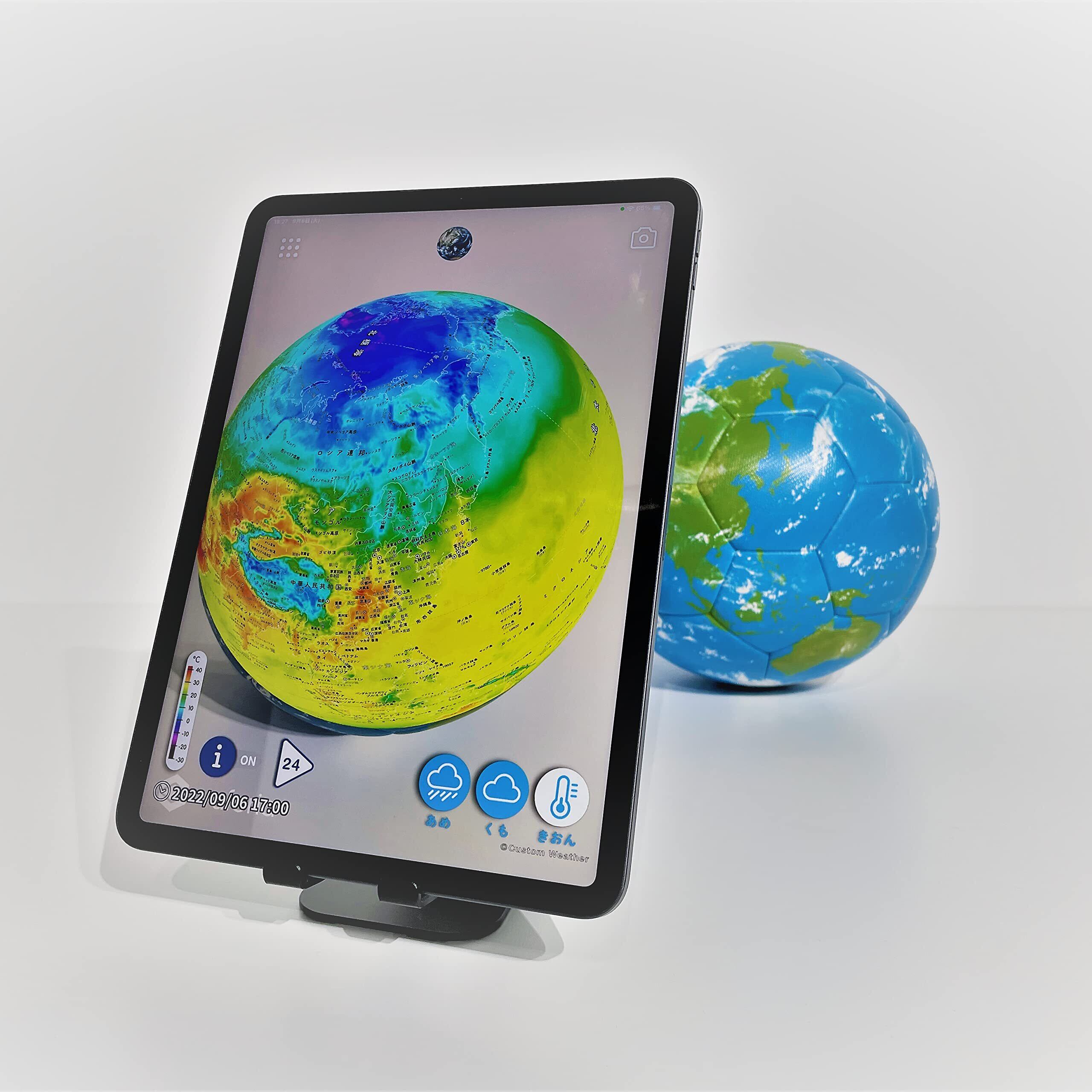 ほぼ日のアースボール PLAY サッカーボールタイプのアースボール。アプリをかざすと地球の「今」がリアルタイムに見える地球儀です。直径約22cm 5号球 ブルー
