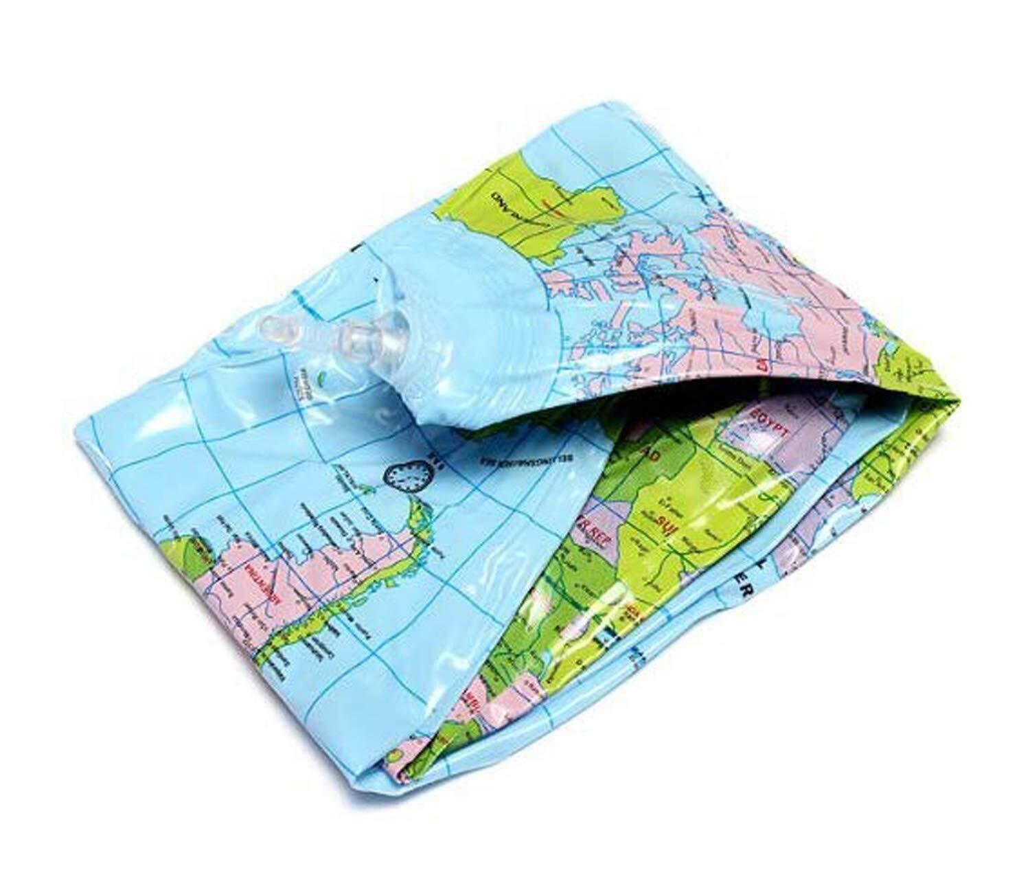 ビーチボールタイプの地球儀は、ふくらませると直径約30㎝。
