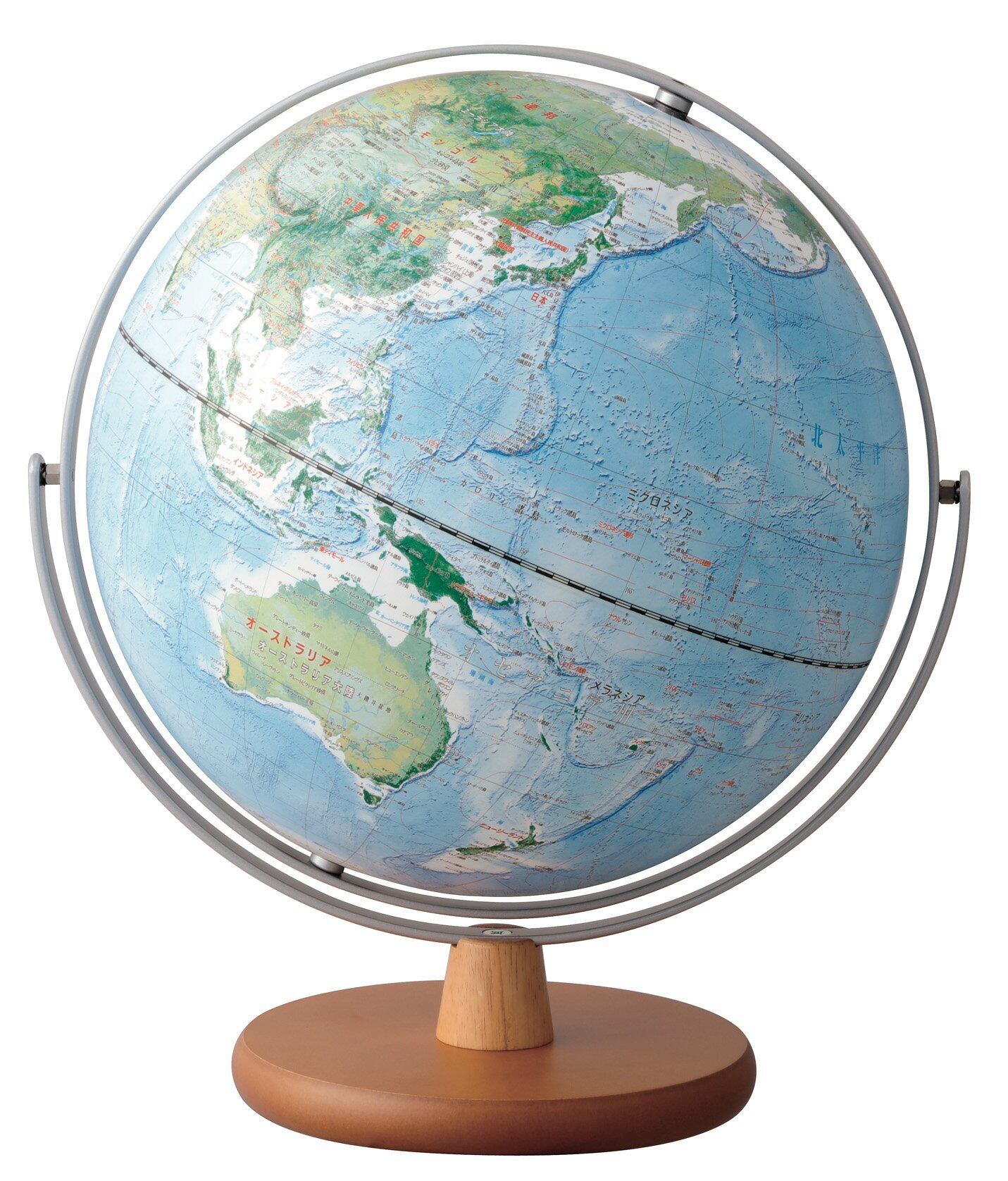 球径30cm。平面地図では解かりにくい距離、方位、大きさ比較を付属の地球儀スケールで学ぶ事ができます。