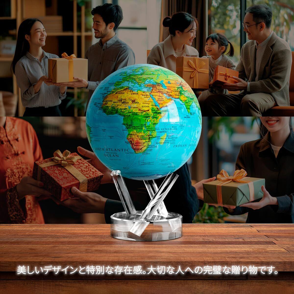 【使用方法】 アクリル台に支柱を3本立てて地球儀を置いて下さい。光をあてると半永久的に回転します。 【使用上の注意】 商品を使用する際にはアクリル台に支柱を3本立てて静かにおいて明るい場所で使用して下さい。 また、パソコン・モニター・テレビなどの機器の近くに置く事は避けてください。これらの電化製品はグローブの動きに影響を及ぼす過度の電磁波を発する可能性があります。
