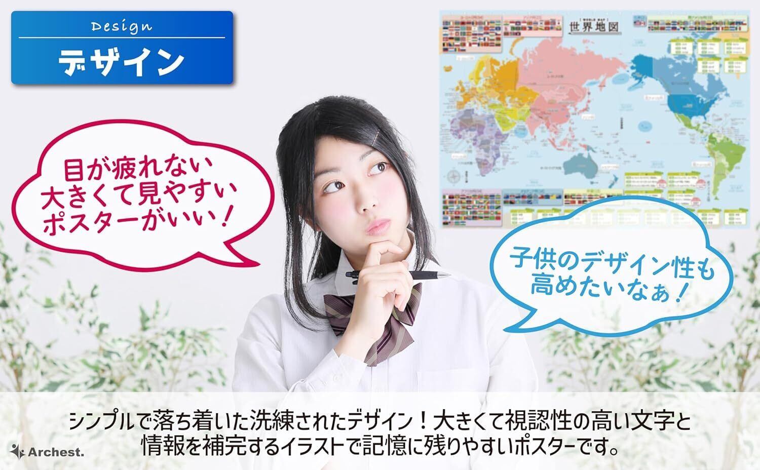 デザイン:地理 内 容:世界地図1枚 サイズ:A2サイズ(420×594mm) 紙 質:ユポ紙