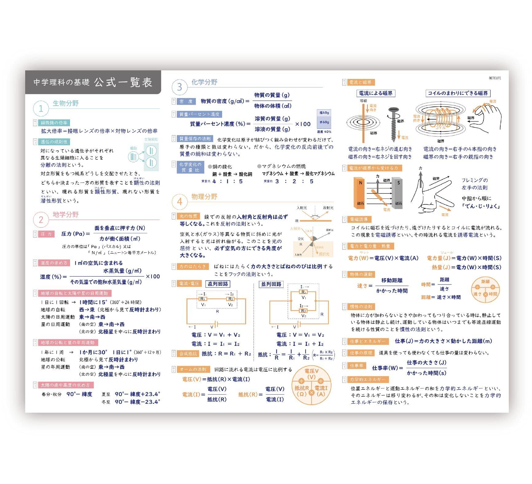 お風呂ポスター 中学理科 A2サイズ (60×42cm) ノートライフ 日本製 防水 (中学理科まとめ)