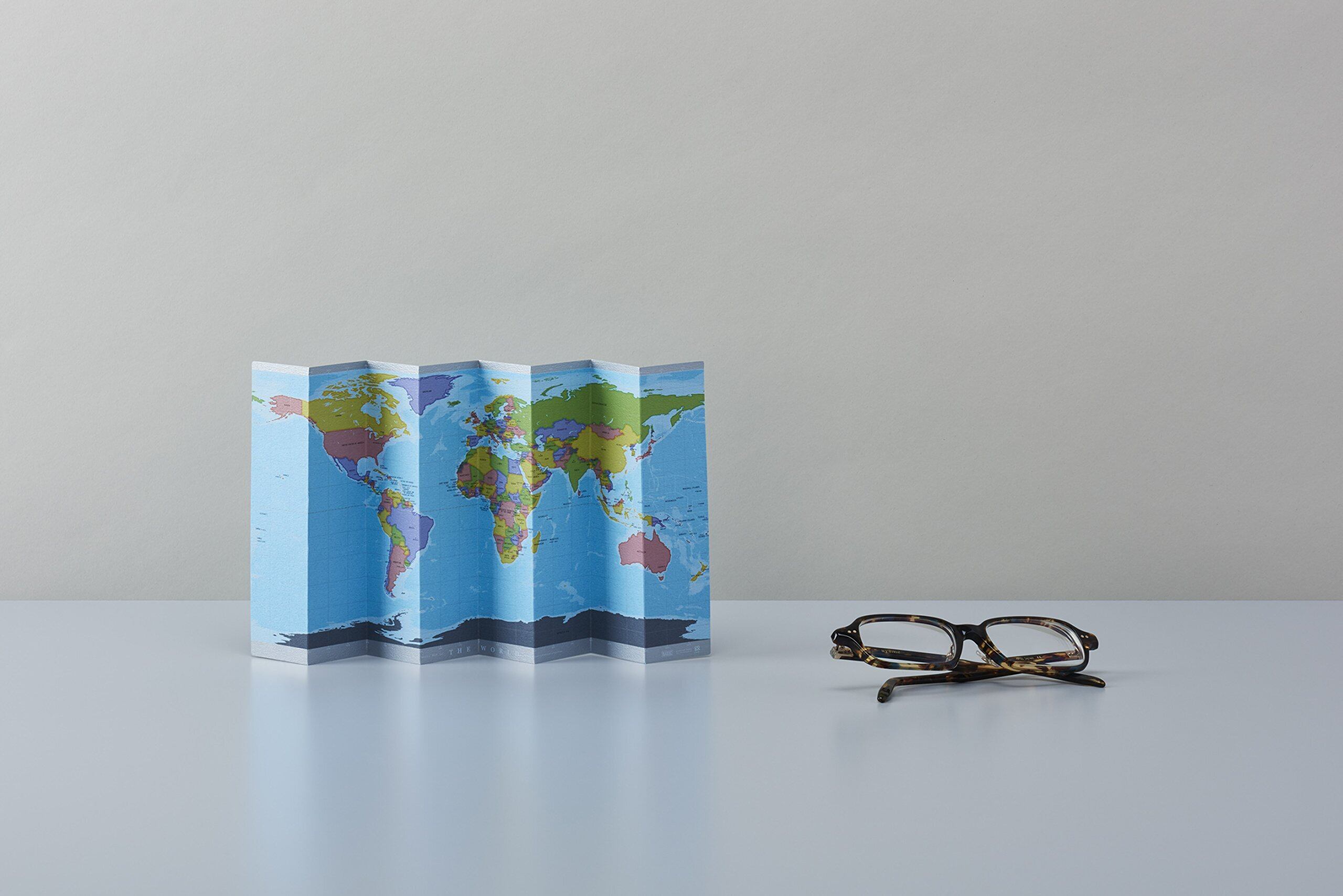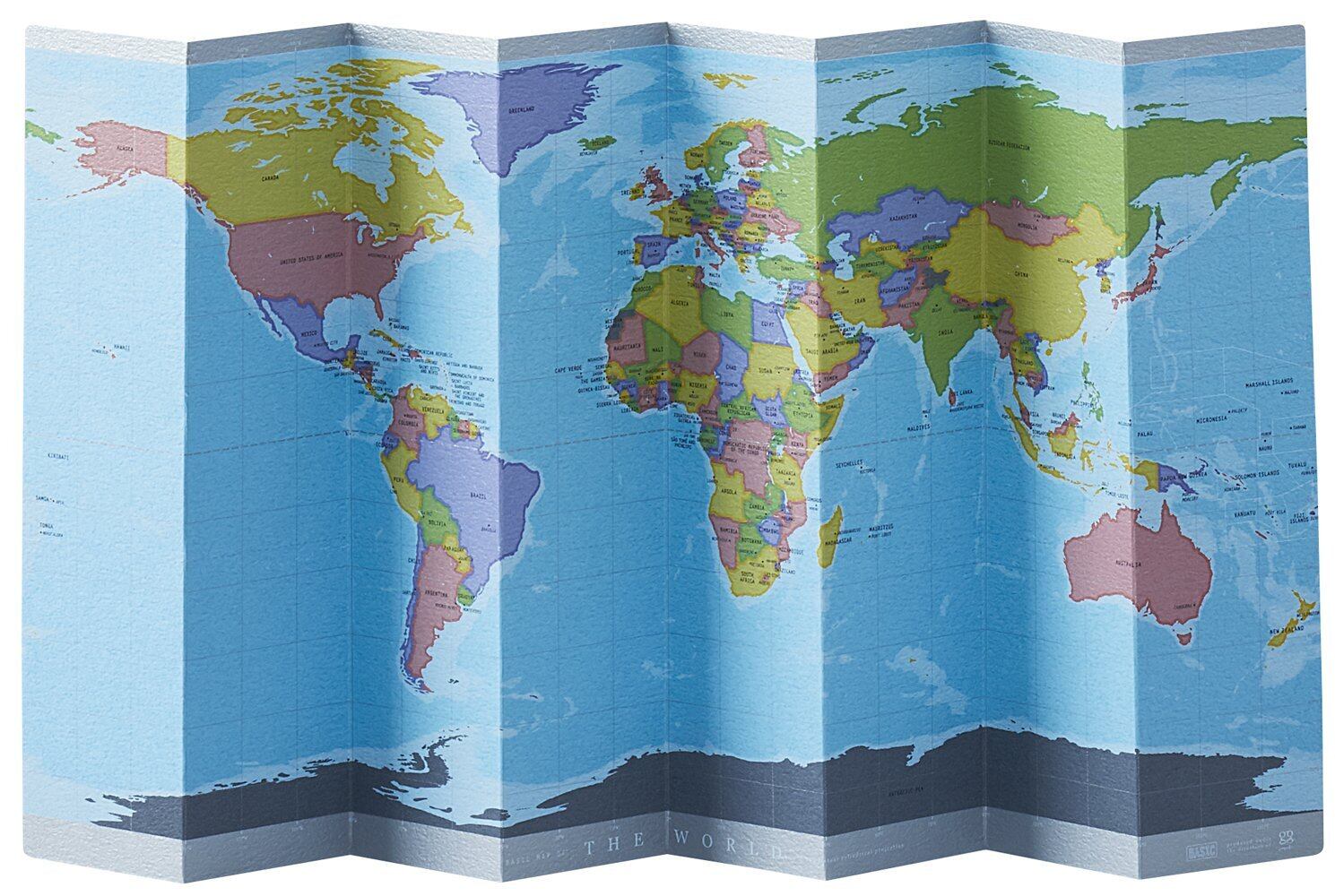 マルモ印刷より登場。屏風(ビョウブ)のように立てておける世界地図です。
