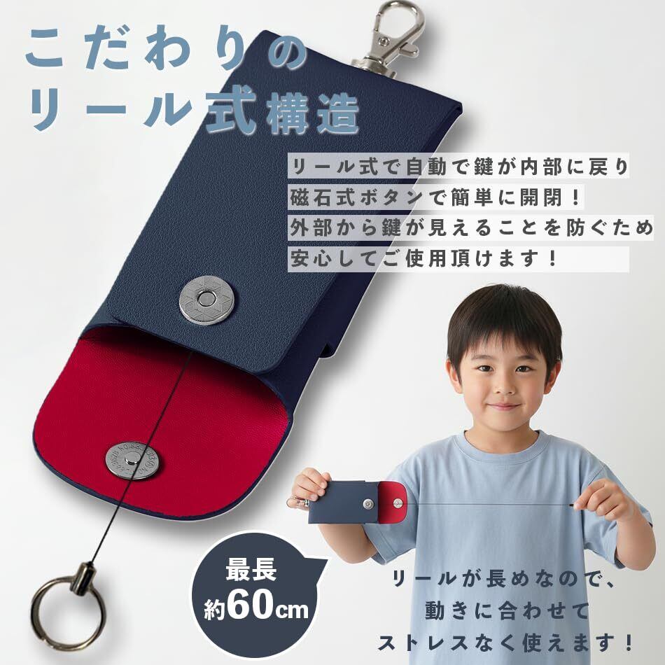 【新着商品】ランドセル キーケース 鍵 リール マジックテープ マグネット PVC レザー 丈夫 伸びる バイカラー かわいい シンプル ナチュラル 目立たない 安心 防止 便利 機能的 収納 小学生 キッズ 子供 男の子 女の子 hugmuu