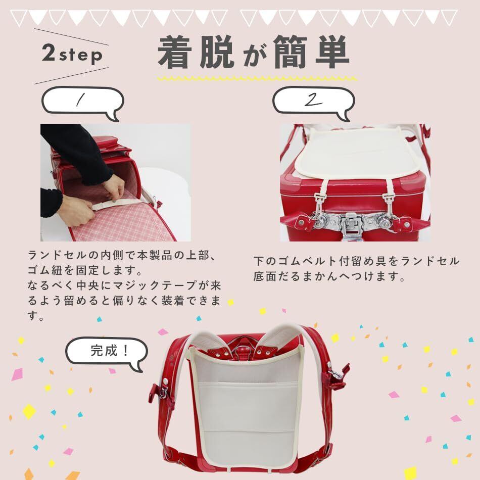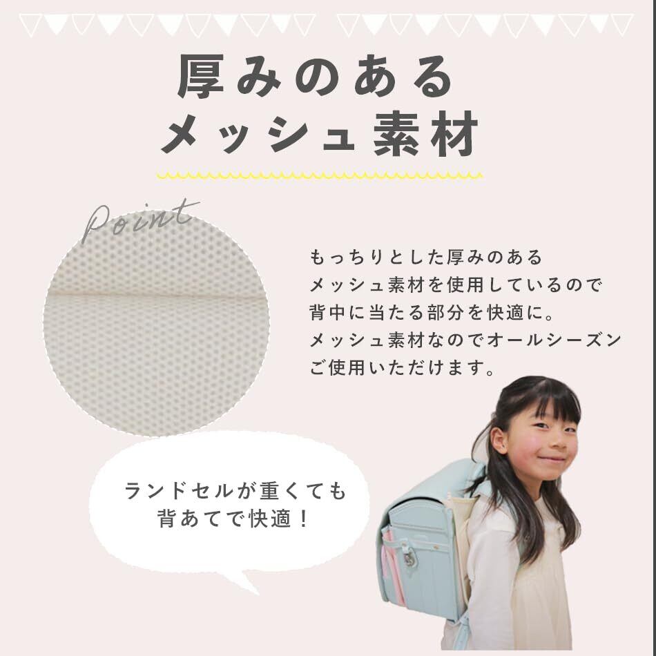 【ランドセルに合わせた長さ】本製品がランドセルから飛び出る、すれて下に下がってくることのないように、背あてをランドセルより少しだけ短く作っております!