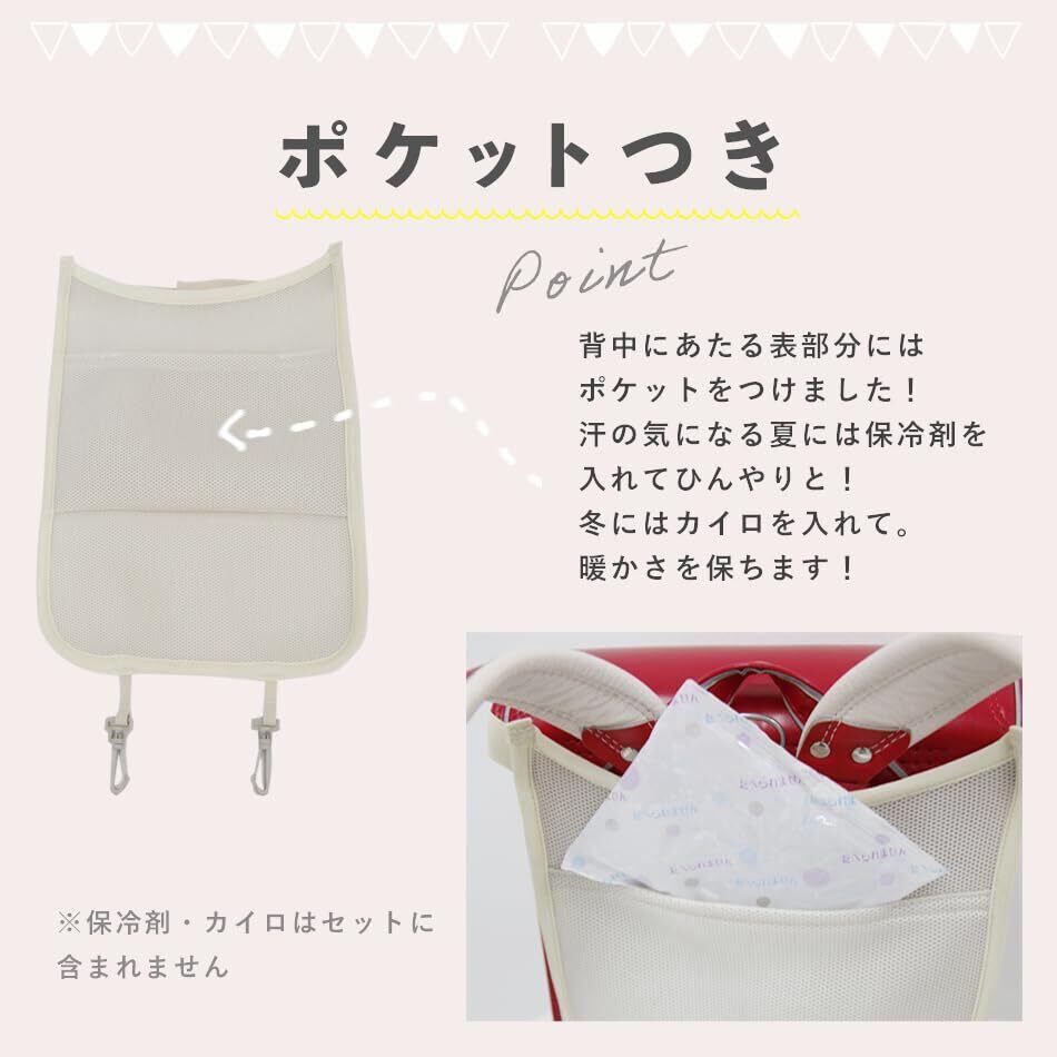 【収納付き】背中にあたる表部分にはポケットをつけました!汗の気になる夏には保冷剤を入れてひんやりと!冬にはカイロをいれて暖かさを保ちます!※保冷剤・カイロは別売りです。